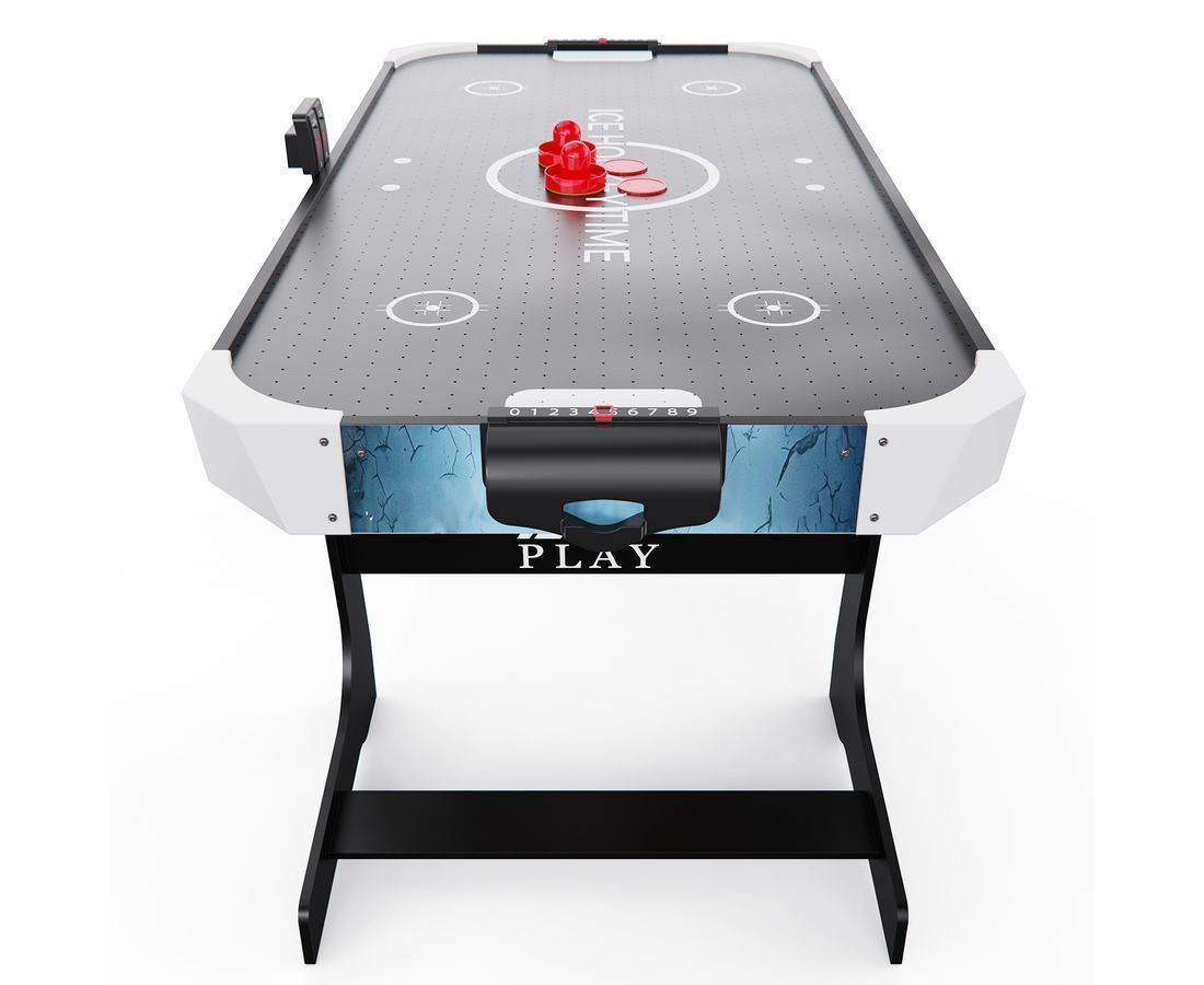 Встроенный вентилятор на 220В создает воздушную подушку, по которой шайба скользит практически без трения — именно так достигается эффект настоящего аэрохоккея. Электронный счетчик ведет учет забитых шайб, избавляя игроков от споров и добавляя соревнованию профессиональный дух. Размер стола — 135,5 х 67,6 х 81 см — позволяет разместить его даже в небольшой квартире, а прочные опорные ножки обеспечивают устойчивость во время динамичной игры.