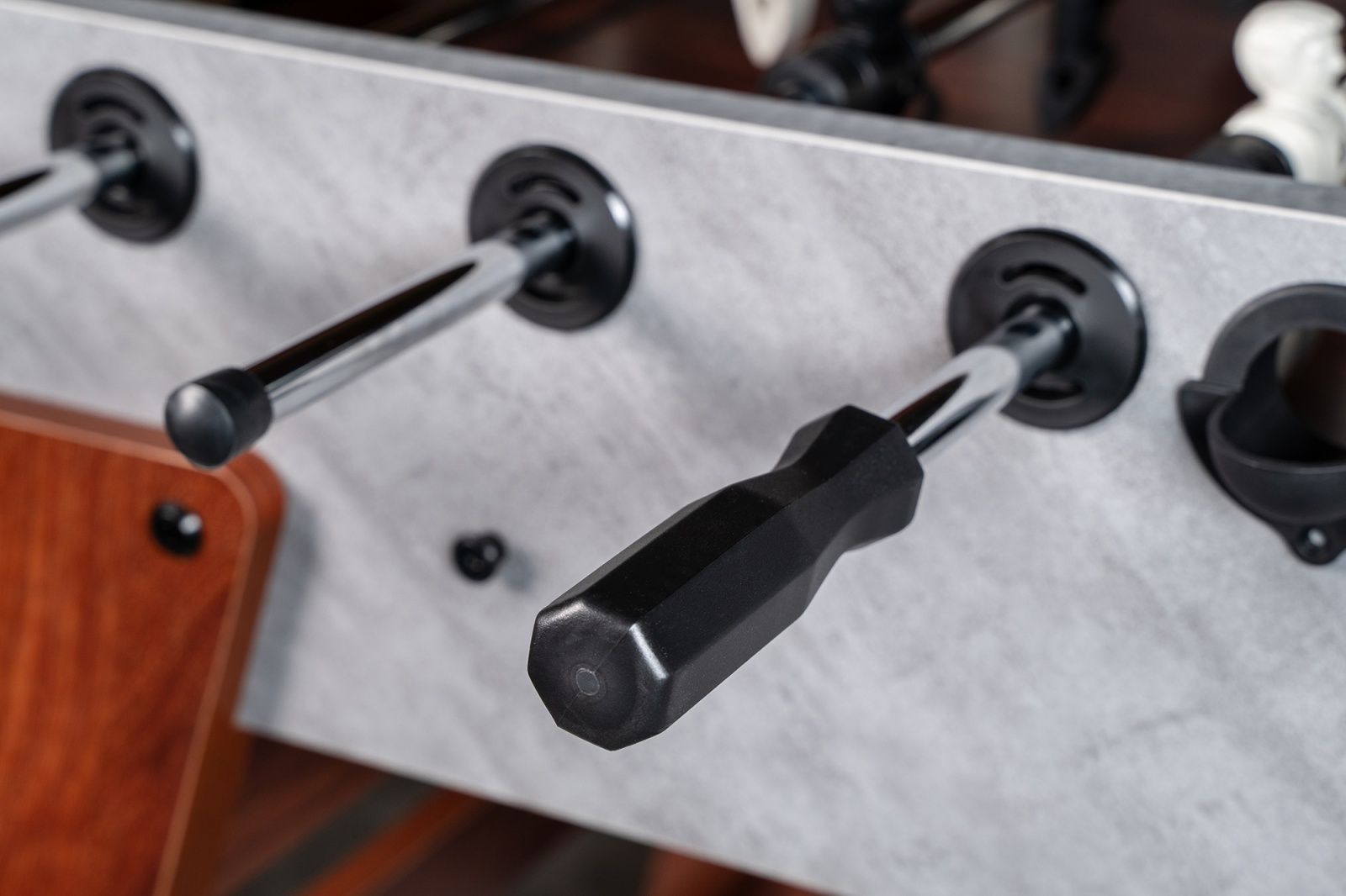 • Штанги, на которых фиксируются футболисты, не ржавеют, гладкие и прочные. Это способствует долгому сроку службы стола и гладкому движению игроков.