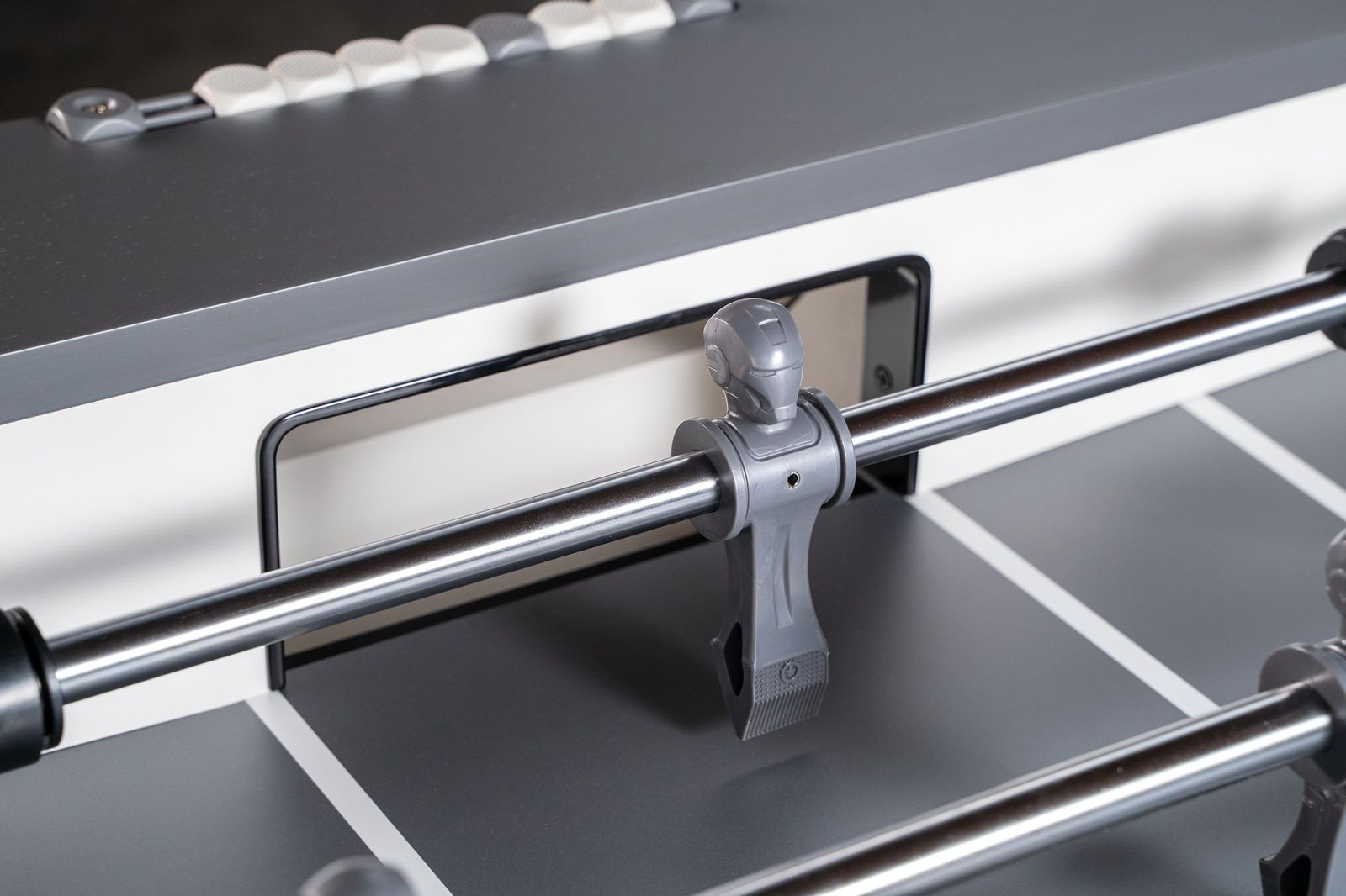 • Штанги, на которых фиксируются футболисты, не ржавеют, гладкие и прочные. Это способствует долгому сроку службы стола и гладкому движению игроков.
