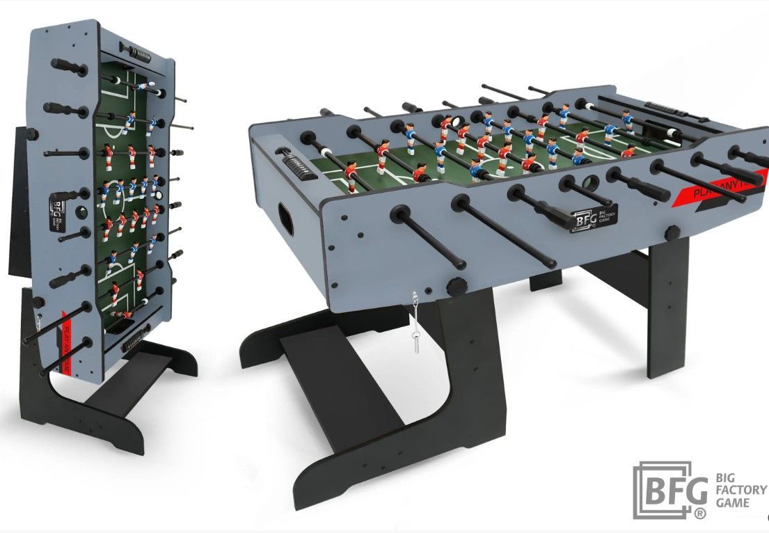 Корпус и игровое поле выполнены из высокопрочных материалов. Модель привлекательна своей компактностью, в сложенном виде она занимает минимальную площадь. Конструкция позволяет легко установить стол практически в любом месте, а возможность трансформации поможет быстро привести стол в игровое положение и сэкономить место при хранении. Монтаж игрового стола прост, его легко собрать самостоятельно, в комплекте предусмотрена инструкция по сборке.