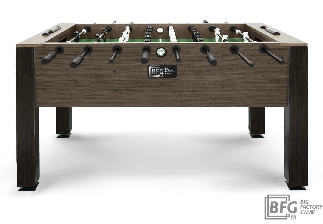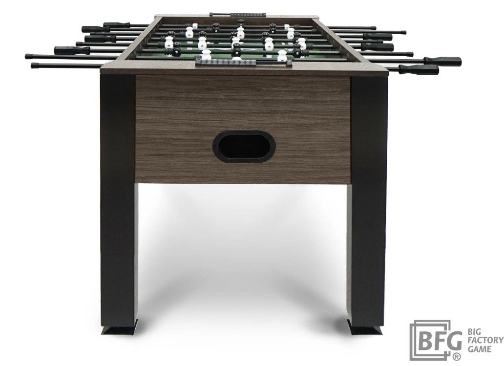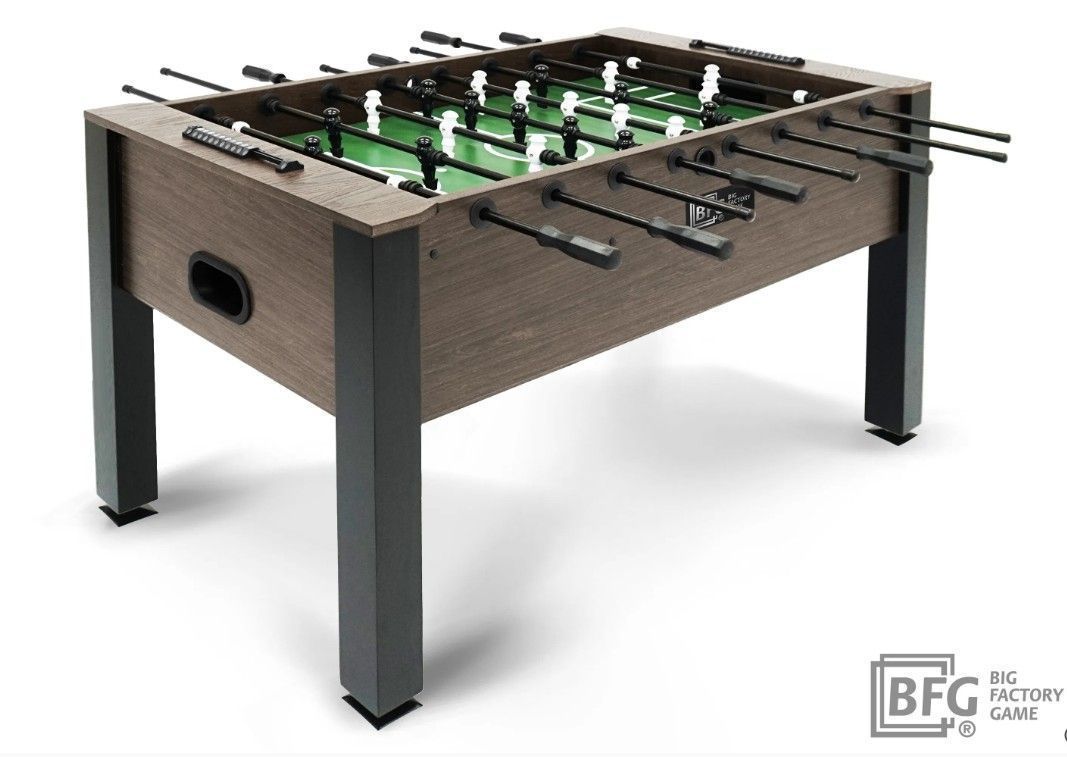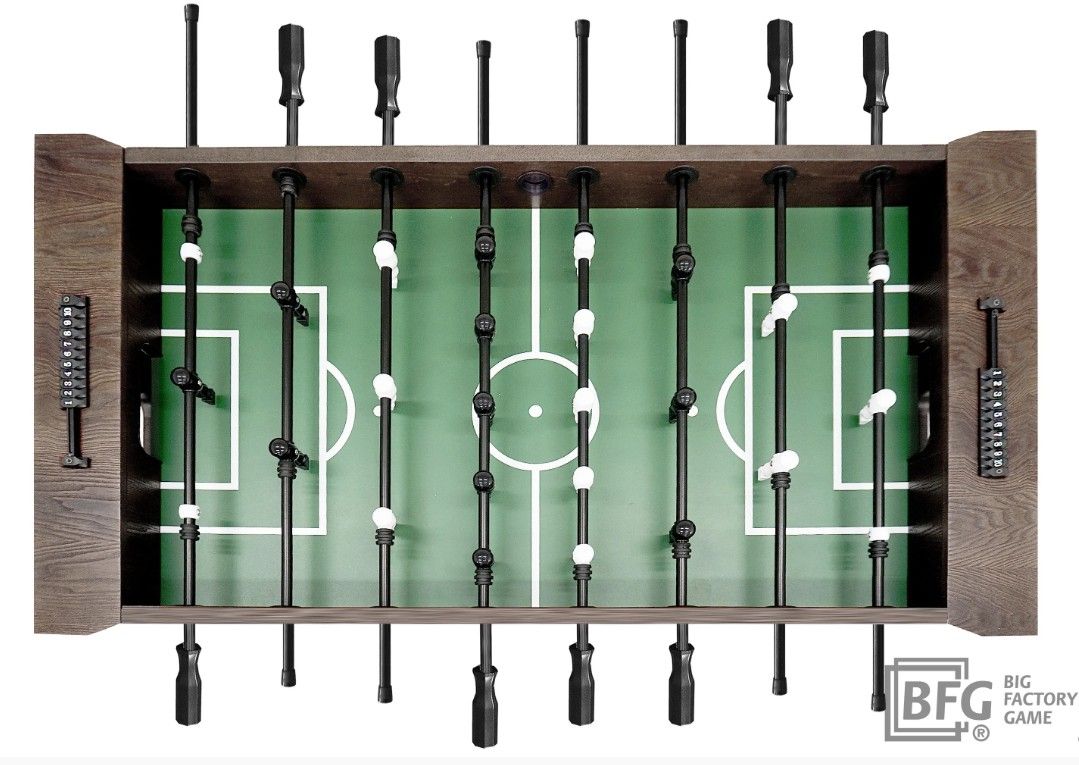 Стол оборудован профессиональными штангами и стилизованными фигурками игроков, выполненными из долговечных и прочных материалов. Ключевым преимуществом модели является материал - стол изготовлен из натурального массива древесины с применением шпона ценных пород.