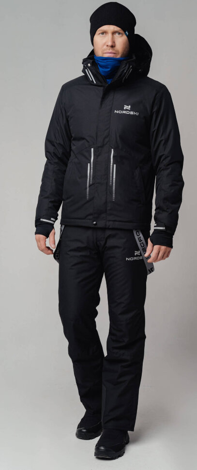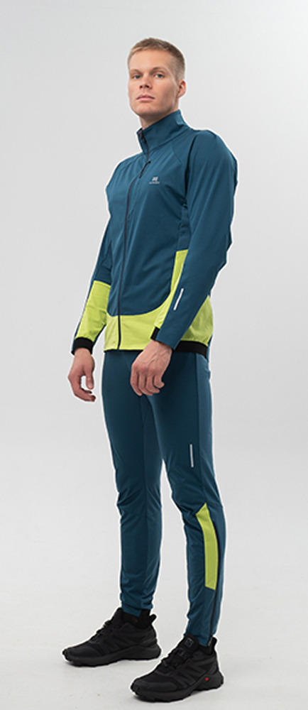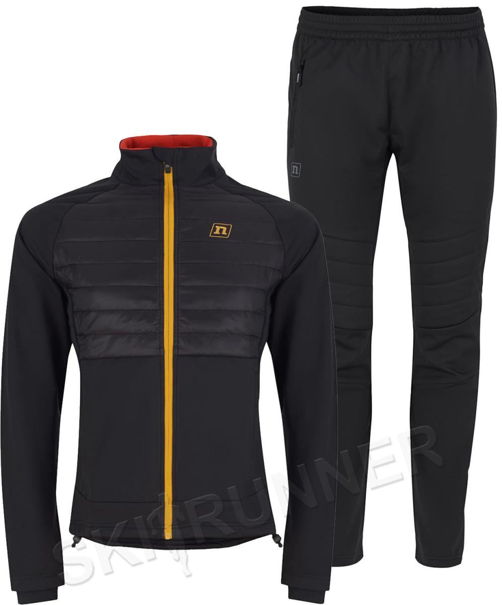 NSM850430-NSM995420 Премиальный костюм для лыж и зимнего бега Nordski Hybrid Hood Black-Alpine Green