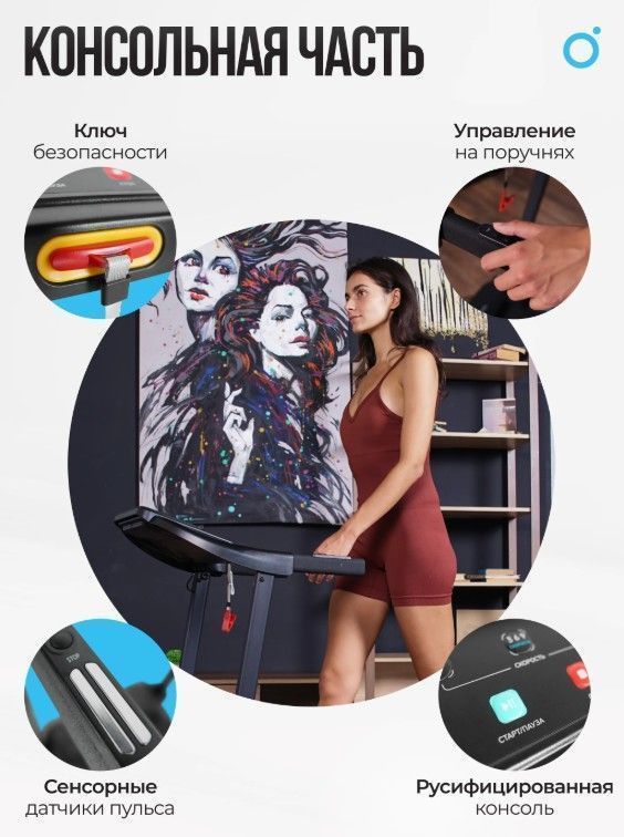 Дополнительные особенности тренажера кнопки управления СТАРТ\СТОП и скоростью на поручнях, ключ безопасности, отсеки для аксессуаров