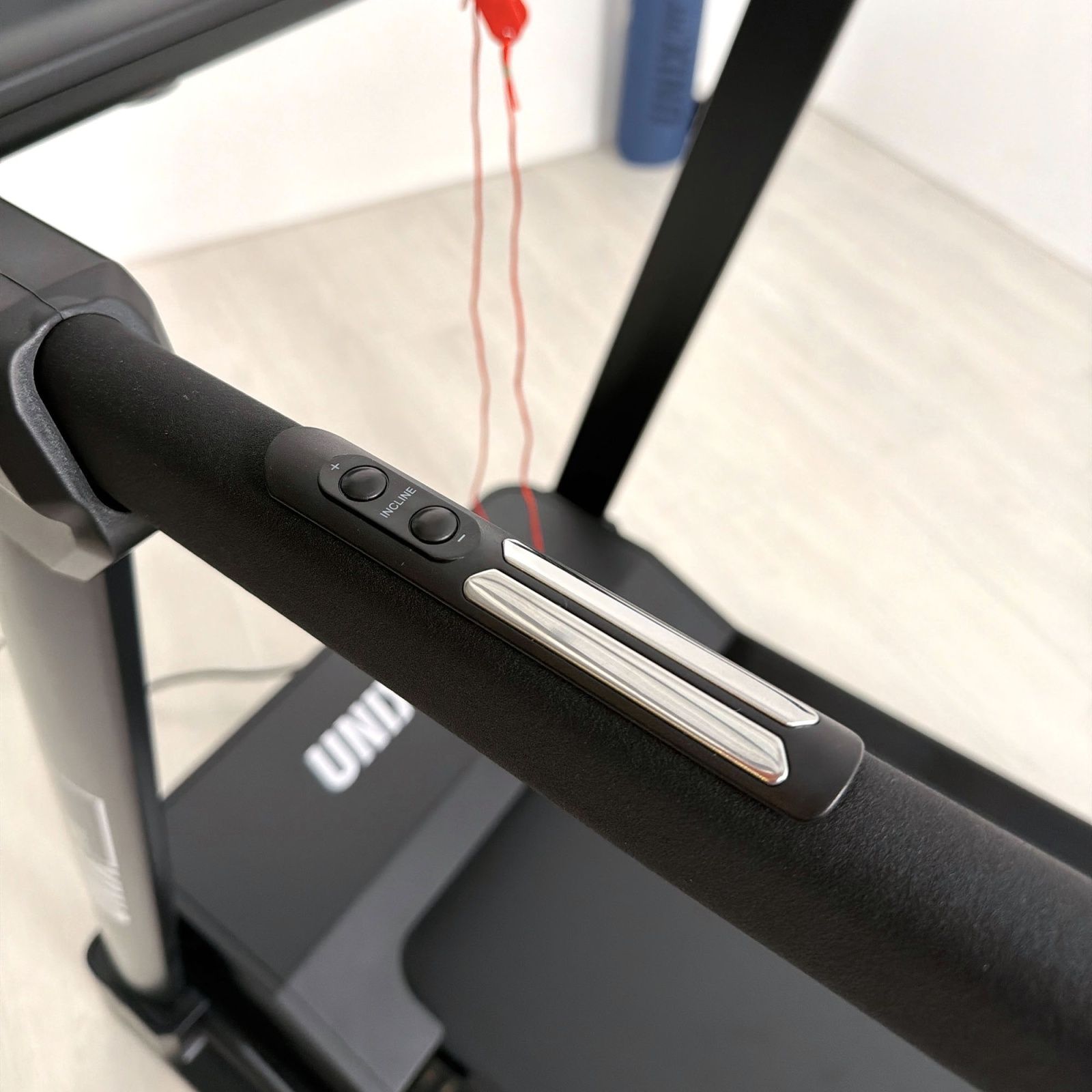 Особенности ключ безопасности, для быстрого управления тренировкой и контроля параметров можно использовать умную кнопку-диммер. Возможности кнопки: нажатие/повторное нажатие: включение/выключение тренажёра; вращение по/против часовой стрелки: увеличение/уменьшение скорости. На дисплее кнопки в циклическом режиме отображаются параметры тренировки: скорость, время, расстояние, количество калорий, пульс