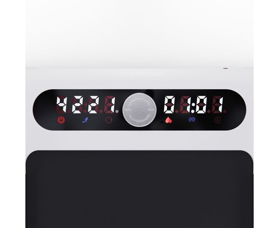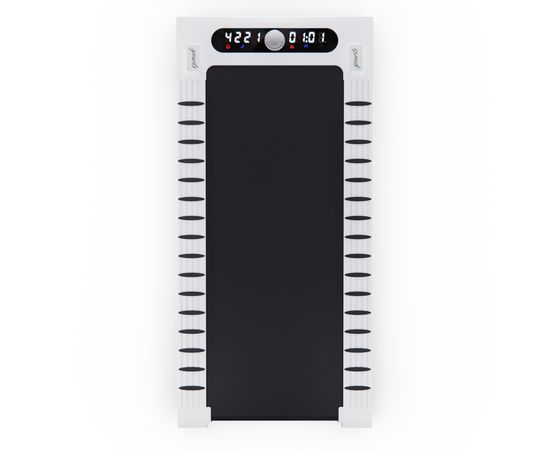 Стильная беговая дорожка PEAK морозно-белого цвета — решение для тех, кто хочет поддерживать физическую форму и заботится о дизайне помещения. Благодаря компактному размеру и отсутствию поручней, она не займёт много места, а также отлично впишется в любой интерьер. Пульт управления работает от 1 батарейки CR2025 (не входит в комплект).