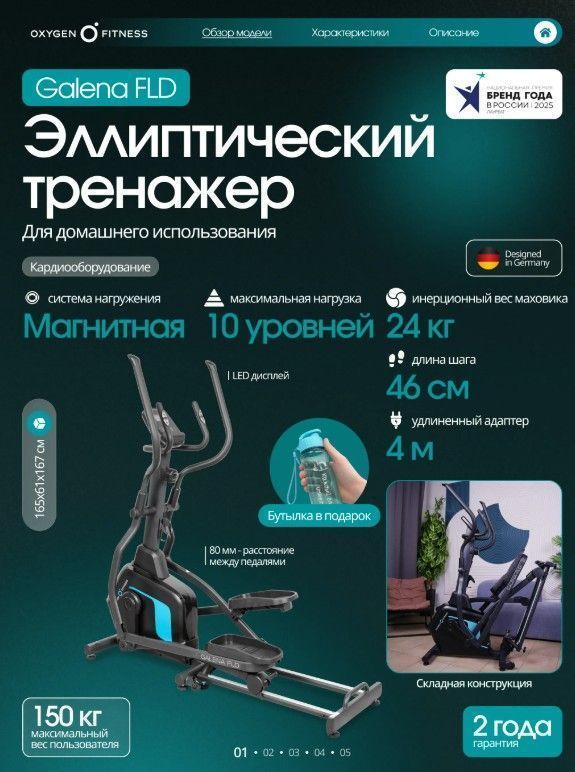 Эллиптический тренажер домашний OXYGEN FITNESS GALENA FLD
