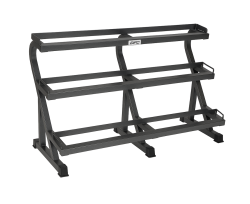 Трёхъярусная конструкция стойки позволяет удобно разместить гантели различных размеров и весов. Оптимальное расстояние между полками обеспечивает лёгкий доступ к каждой паре гантелей, а сама стойка экономит пространство, сохраняя порядок в домашнем спортзале.