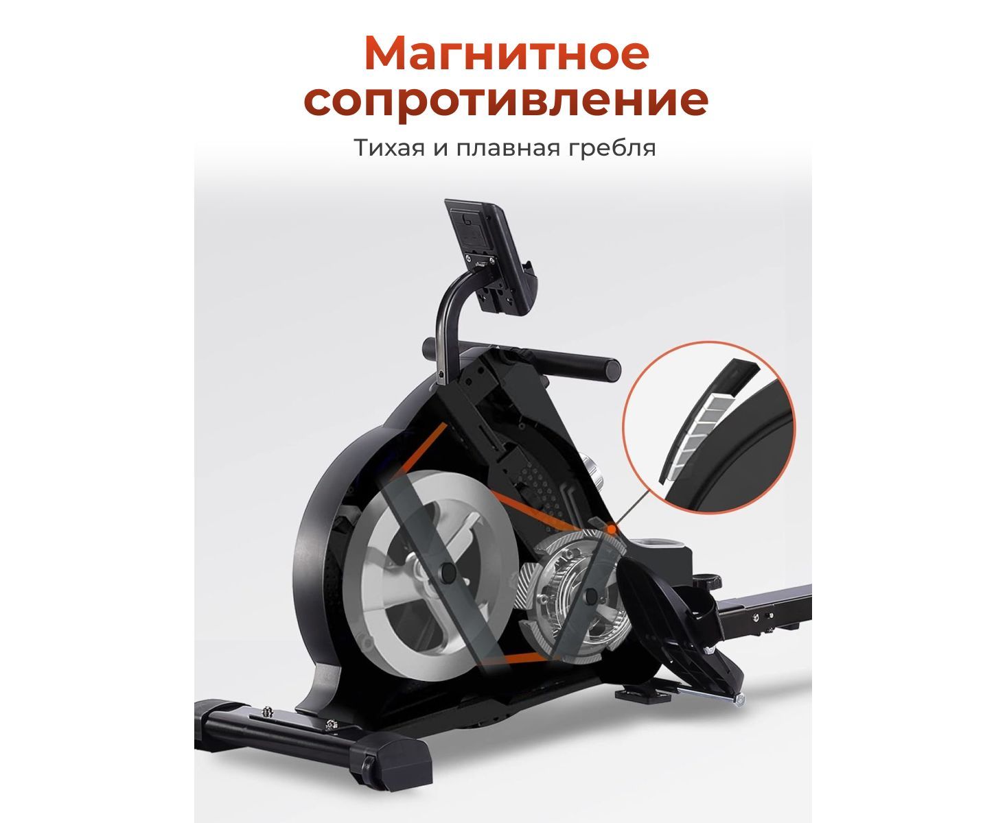 Магнитная система с механической регулировкой предлагает 16 уровней нагрузки, позволяя легко адаптировать интенсивность тренировки под индивидуальные цели и уровень подготовки, а вес маховика 3 кг способствует плавной и стабильной работе тренажёра, создавая комфортные условия для длительных и эффективных тренировок.