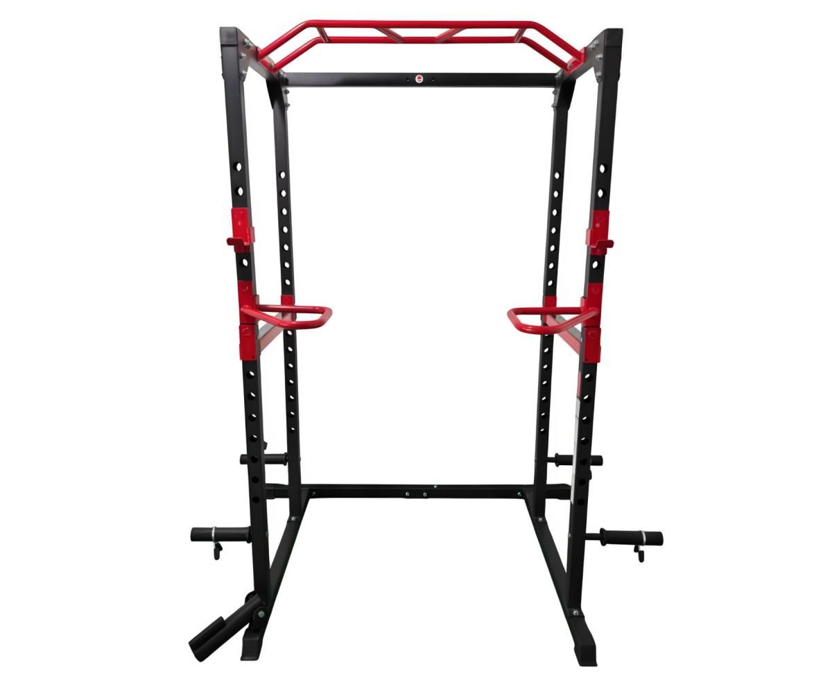 В нижней части рамы предусмотрено отверстие для выполнения жима в стиле лэндмайн, расширяющего возможности тренировок плеч и корпуса. Боковые упоры позволяют выполнять отжимания на брусьях, прорабатывая грудные мышцы, трицепсы и плечи. Многопозиционный турник даёт возможность выполнять различные виды подтягиваний, включая широкий, узкий и обратный хват, делая тренажёр универсальным решением для комплексных силовых тренировок всего тела.