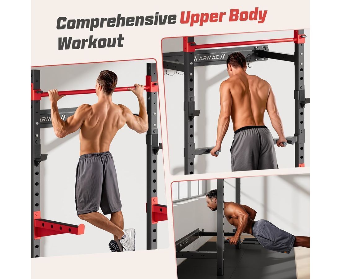 Максимальный вес пользователя составляет до 120 кг, что обеспечивает комфортную и безопасную эксплуатацию для людей с разным уровнем подготовки. Рама имеет 18 регулировочных отверстий, что позволяет адаптировать высоту перекладин под различные упражнения и рост пользователя. Турник и перекладины выдерживают значительные нагрузки, а конструкция рамы прочная и надежная, обеспечивая стабильность во время занятий.