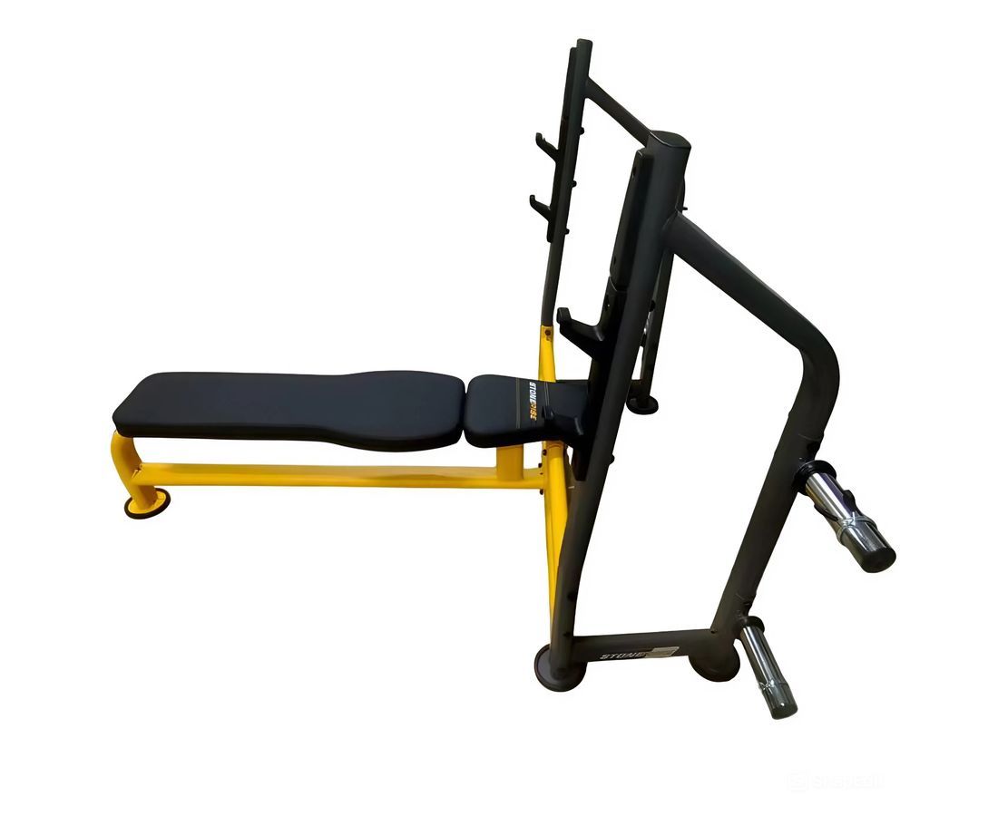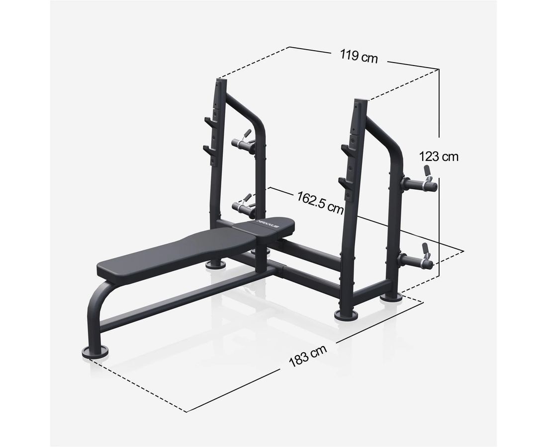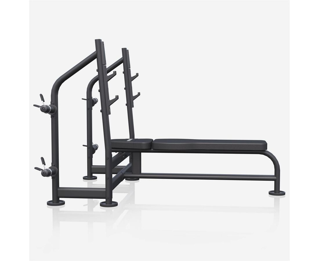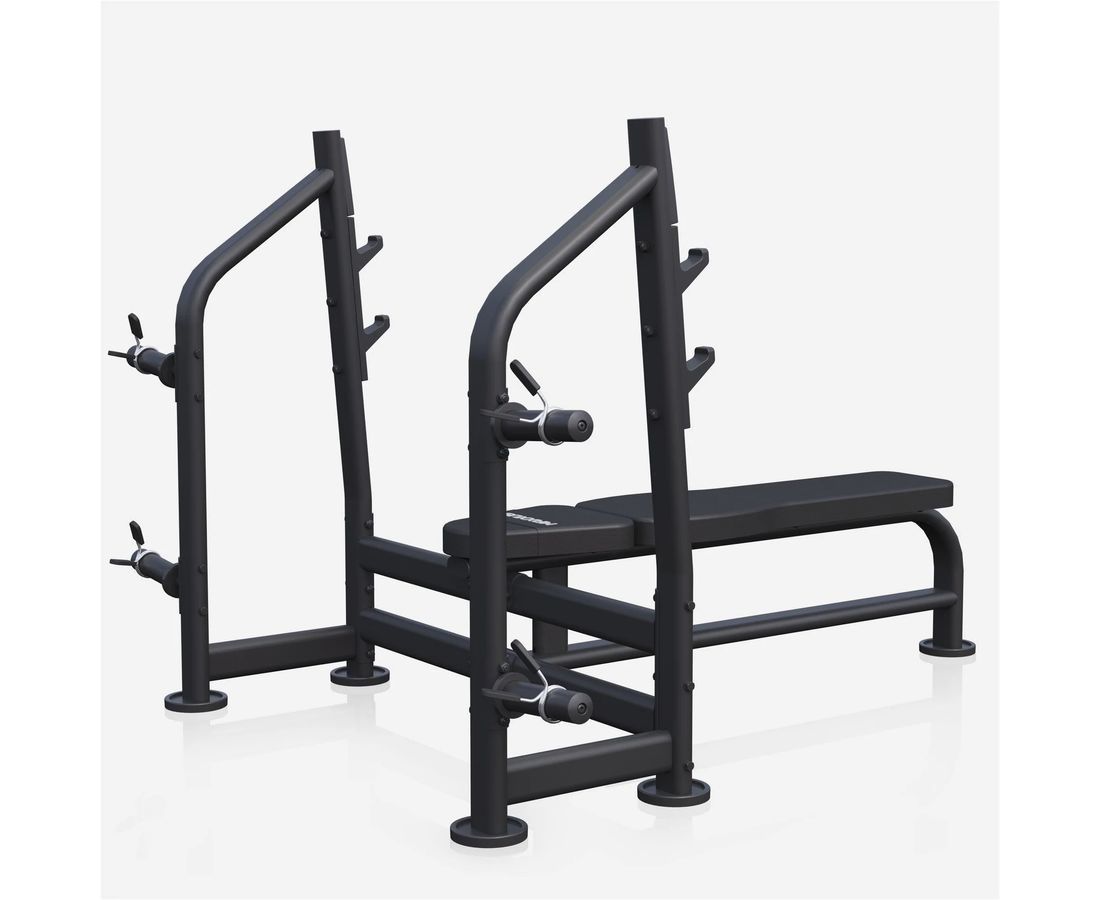 Скамья обеспечивает оптимальные условия для выполнения жима лёжа, жима на плечи, разведений рук и многих других упражнений. Для удобства и безопасности тренировки предусмотрены страховочные крюки, обеспечивающие высокий уровень безопасности во время занятий. Четыре держателя для блинов с пружинными замками помогают поддерживать порядок в тренировочной зоне, а конструкция рассчитана на использование стандартных олимпийских блинов.