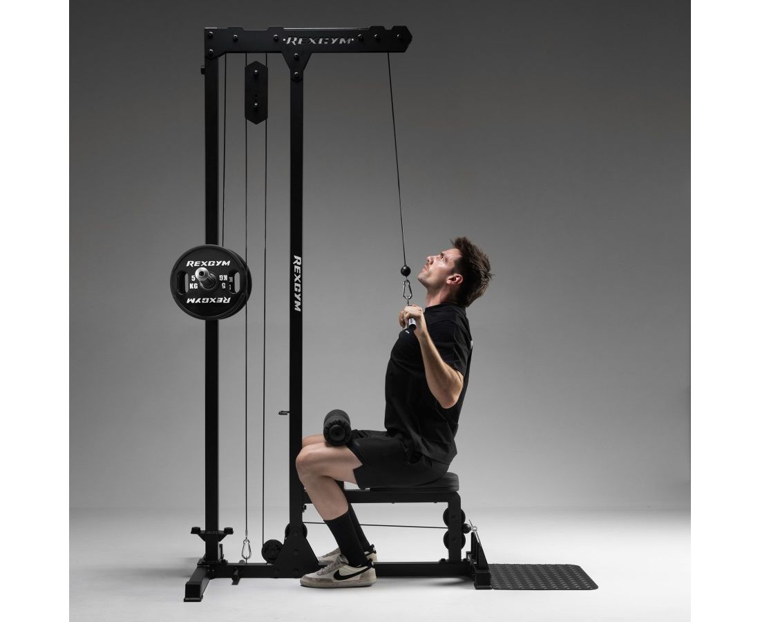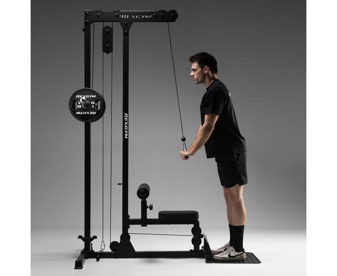 Тренажер тяга сверху/снизу DFC D2017G идеально подходит для регулярных домашних тренировок, позволяя эффективно выполнять тягу сверху и снизу для всесторонней проработки мышц верхней части тела.
