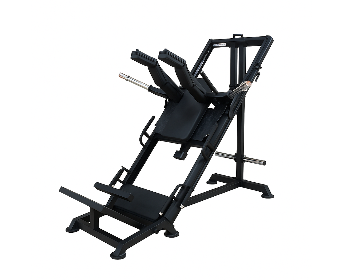 Гакк-машина / Жим ногами DFC STONERISE DLP04 — универсальный тренажёр для комплексной проработки мышц ног, ягодиц и икр. Модель сочетает функции гакк-машины и жима ногами, что делает её идеальной для домашних тренировок.