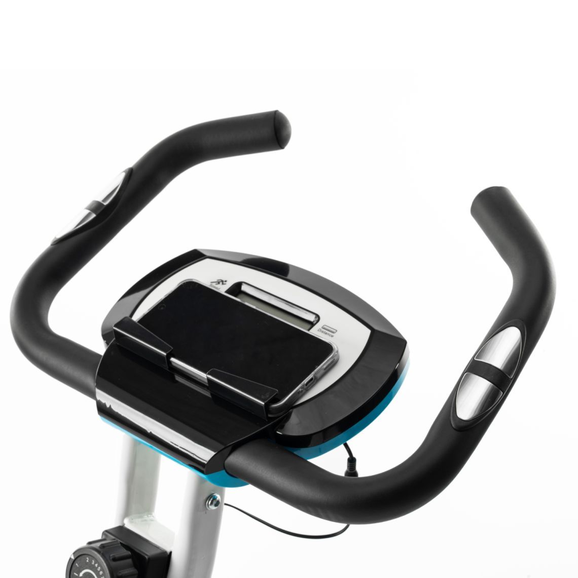 Тренажёр оснащён монохромным LCD-дисплеем, который отображает все основные параметры тренировки: время, дистанцию, скорость, калории и пульс. Измерение пульса осуществляется с помощью сенсорных датчиков, встроенных в поручни — это позволяет контролировать интенсивность нагрузки и корректировать тренировку в зависимости от уровня подготовки. Дисплей работает от двух батареек типа AAA (в комплект не входят). Дополнительно предусмотрена подставка под планшет, чтобы можно было смотреть видео или слушать музыку во время занятия.