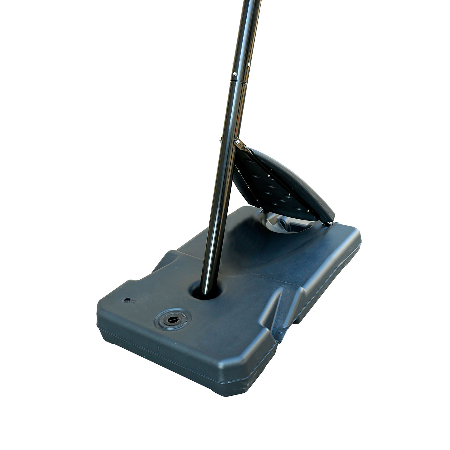 В основание стойки необходимо залить воду или засыпать песок. Для перемещения стойки по площадке в основании предусмотрены ролики.