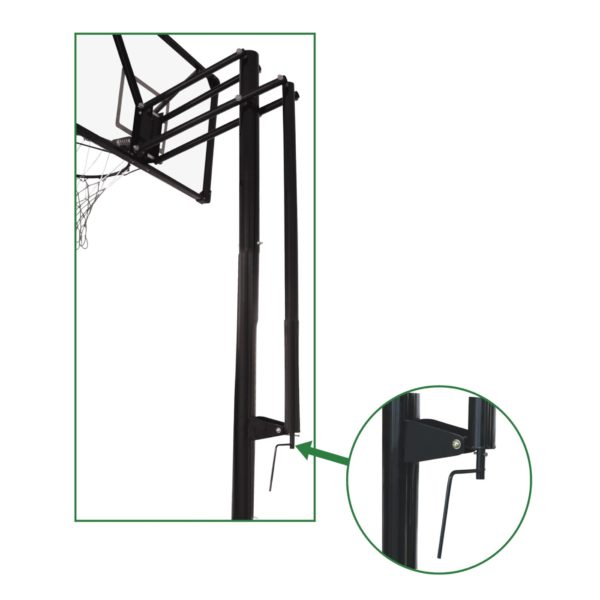 Система регулировки высоты кольца: поворотный механизм регулировки. Ультраточная регулировка вплоть до 1 см