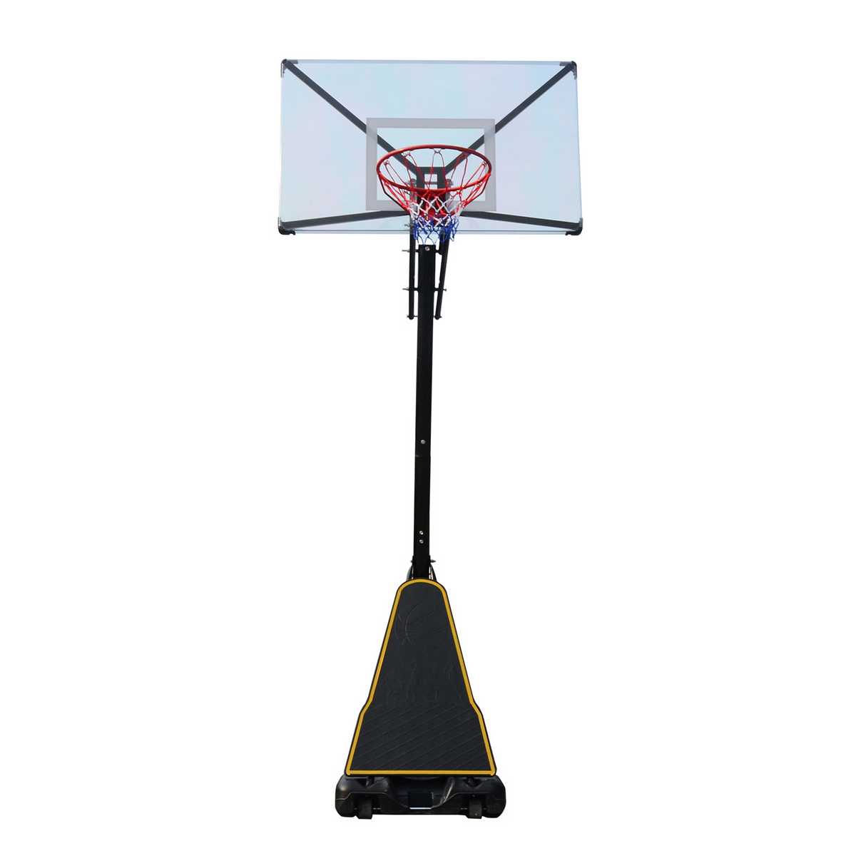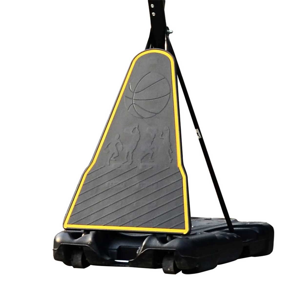 Опорой стойки служит пластиковое основание, в которое для устойчивости всей конструкции необходимо залить воду. Если вы не планируете убирать стойку в помещение в зимнее время, то рекомендуем в основание стойки засыпать песок или залить антифриз. Для перемещения по площадке в основании баскетбольной стойки установлены ролики.