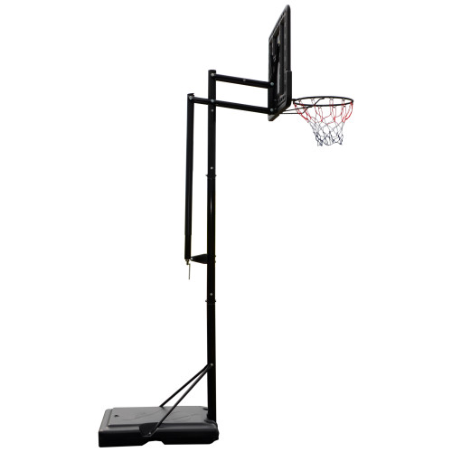 Имеет устойчивую конструкцию и усиленное металлическое кольцо для активной игры. Емкость основания заполняется 65 кг воды или песка. Встроенные в основание транспортировочные колеса облегчают транспортировку.