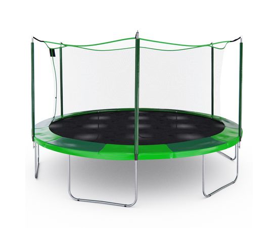 Диаметр батута составляет 457 сантиметров. Батут оснащен 6ю U образными ножками как у старшей модели, что позволяет ему выдерживать повышенные нагрузки за счет более компактной конструкции. Максимальный вес пользователя составляет 170 кг. Одновременно на батуте может находится только один пользователь. Каркасный батут DFC UPPER BOUNCE 15FT отличный батут для дачи и детей. Этот батут идеально подходит для детей и взрослых, которые хотят весело провести время на свежем воздухе, не беспокоясь о своей безопасности.