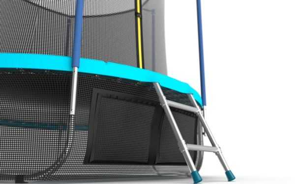 - Комплектация: Батут, верхняя защитная сеть, защитный мат, лестница, нижняя защитная сеть