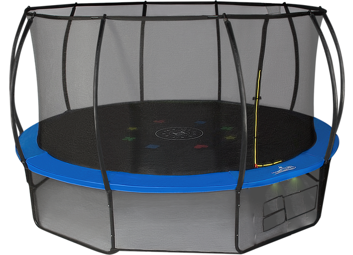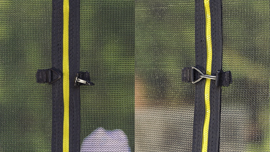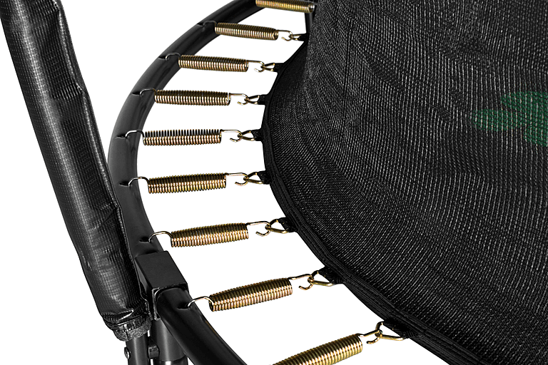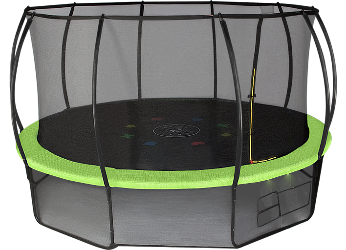Безопасность. Благодаря инновационному, прямому, креплению защитной сети к прыжковому полотну, была достигнута максимальная защита от пружин при падении. Плетение настолько мало, что исключена любая возможность травмы, даже для самых маленьких пользователей.