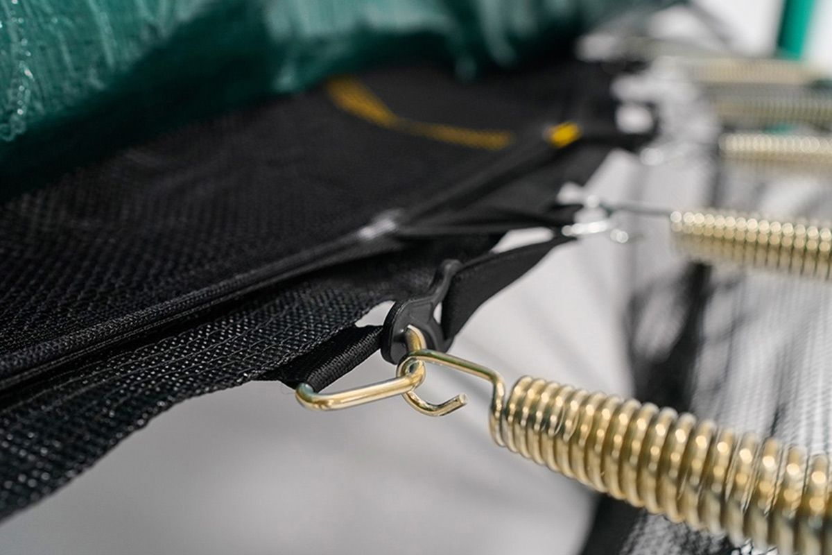 Наименование Батут Classic Green (4,26 м) Торговая марка HASTTINGS ® Сборка КНР Комплектация каркас батута, комплект пружин, защитный мат, верхняя защитная сетка, нижняя защитная сетка, лестница, ключ для установки пружин, набор инструментов и крепежей Особенности является обладателем премии "Лучшее детям". Регистрационный номер №11119L1333 Вход на батут самозакрывающийся клапан Покрытие рамы двойная оцинковка Каркас батута гальванизированная сталь, ⌀38 х 1,4 мм / Гальванизированная сталь, ⌀42 х 1,5 мм Опорные стойки прямые Пружины 96 Тип пружины цилиндрические серебряные пружины Основание батута 4 w-образные ноги Соединительное крепление рамы разъемное соединение T-Master Lock Верхнее крепление сетки ремешки с 2 пряжками (полукольцом) Нижнее крепление сетки резинка с крючком Расположение верхней защитной сетки внутреннее Прыжковое полотно перматрон (permatron) Защитный мат покрытие - армированный ПВХ устойчивый к УФ-излучению Наполнитель - Увеличенный слой EPE-пены, он не токсичен, устойчивой к перепадам температур и влажности Особенности защитного мата однотонный, зеленый. Армированный ПВХ устойчив к трению и механическим повреждениям, водонепроницаемости и к перепадам температур Материал сетки полиэстер (polyester) с уменьшенной ячейкой плетения и УФ-фильтром Баскетбольное кольцо опционально Максимальный вес пользователя 160