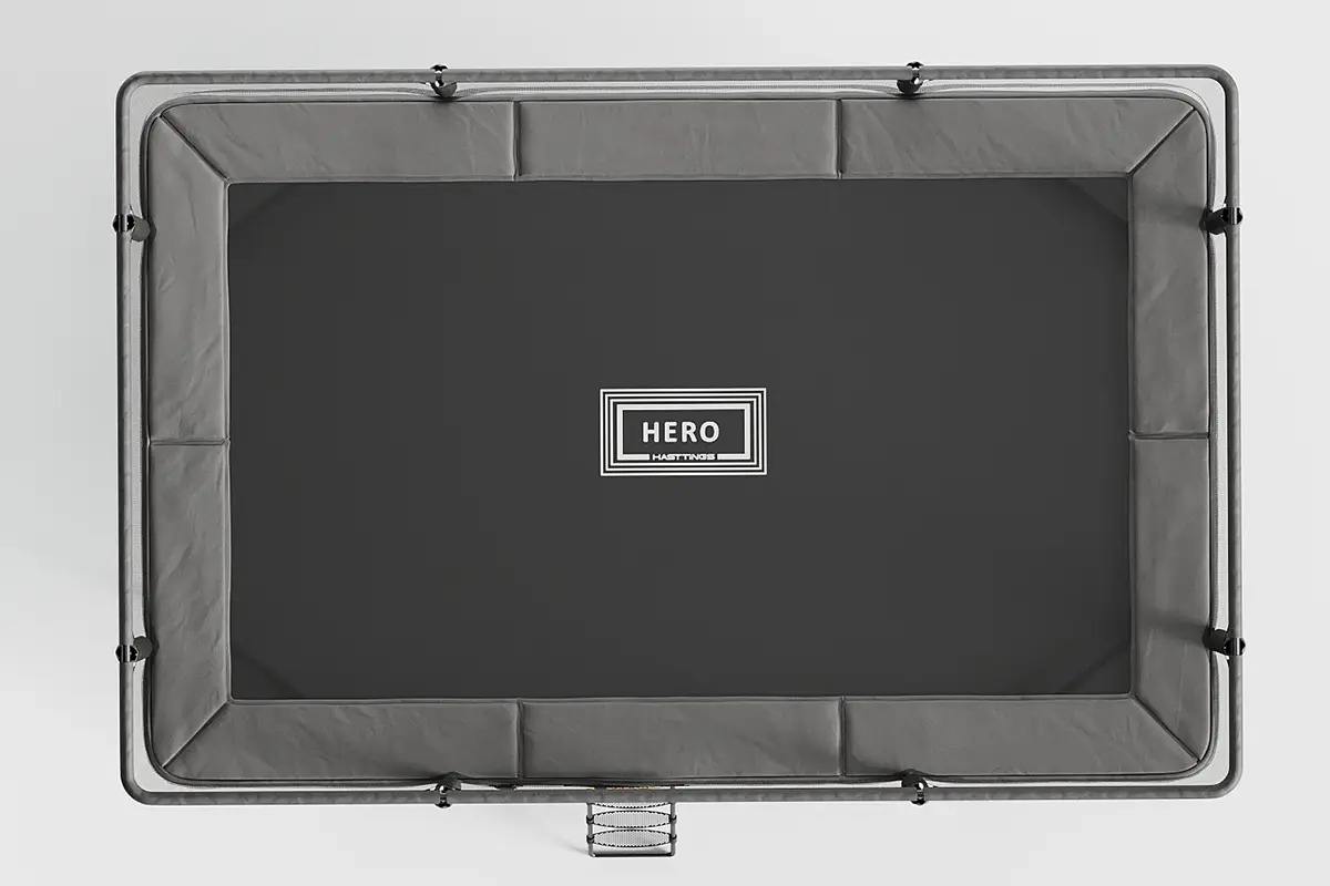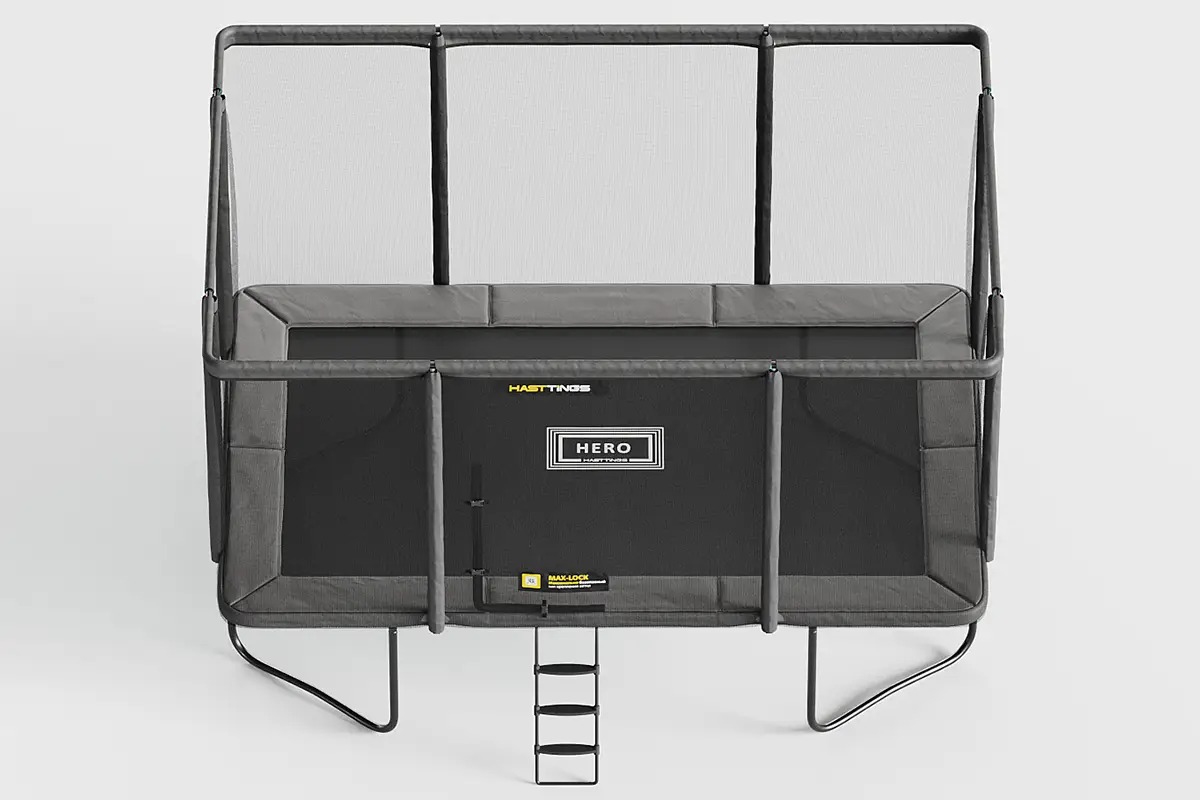 Общие характеристики Наименование Батут Hasttings Hero 9x14FT Торговая марка HASTTINGS ® Сборка КНР Комплектация Каркас батута, комплект пружин, защитный мат, верхняя защитная сетка, 3-х ступенчатая лестница, ключ для установки пружин, набор инструментов и крепежей Баскетбольное кольцо Нет Тент Нет Вход на батут На молнии с 2-х сторон, 3 карабина Покрытие рамы Двойная оцинковка + Порошковое окрашивание Каркас батута Гальванизированная сталь изнутри и снаружи ⌀60 x 2,5 мм Опорные стойки 8 прямых стоек ⌀38 x 1,5 мм Пружины (шт) 94 Длина пружин (мм) 216 Тип пружины Бочкообразные пружины + специальное антикоррозионное покрытие (Gold) Основание батута (количество ног) 4 w-образные ноги ⌀50 x 2,0 мм Тип соединения деталей рамы Разъемное соединение T-Master Lock Тип соединения Фиксатор Pop-Pin Тип крепления верхних стоек к раме батута Фиксатор Pop-Pin Высота рамы (см) 95 Расположение верхней защитной сетки Внешнее Высота защитной сетки (см) 190 Верхнее крепление сетки Сетка фиксируется по всему верхнему контуру каркаса батута Нижнее крепление сетки Прямое крепление сетки - cистема Max-lock Размер прыжкового полотна (мм) 2070 x 3630 Материал прыжкового полотна Тканый полипропилен USA Tencate™ Permatron® Contour control По периметру прыжковой зоны оранжевая лента Материал сетки Полиэтилен (PE) с уменьшенной ячейкой плетения Особенности защитного мата Полиэстеровая ткань. За ним легко ухаживать. Он быстро сохнет и не теряет форму Максимальный вес пользователя (кг) 150 Качество Сертификат международного качества CE+GS Фирменная гарантия До 5 лет Транспортировочные габариты и вес Размеры в рабочем состоянии (Д х Ш х В) (см) 265 x 422 x 285