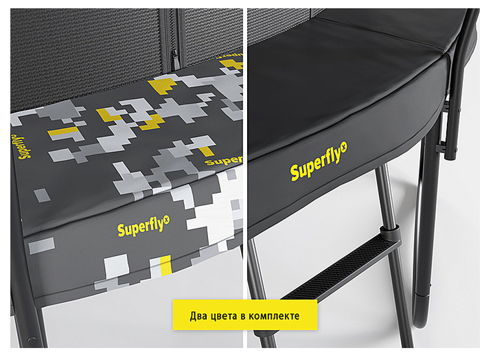 Габариты и вес батута Размеры упаковки (см) (Д х Ш х В) / количество коробок (шт) 128x38x29.5 / 128x38x21 / 118x48.5x14 Вес комплект-батута (кг) 130 кг (3 коробки) Качество Сертификат качества TUV / GS Сертификат испытаний PAH Test Фирменная гарантия дифференцированная до 10 лет Наименование Батут SuperFly (4,6 м) Торговая марка HASTTINGS ® Комплектация рамная конструкция, защитный мат двухсторонний, защитная сетка, лестница Сборка КНР Диаметр (см) 458 Покрытие рамы три слоя защиты рамы (двойная оцинковка и слой порошковой краски) Каркас батута трубы диаметром 42 мм, толщина стали 2 мм Опорные стойки трубы диаметром 32 мм, толщина стали 1.2 мм Пружины 96 шт., пружины длиной 216 мм, диаметр 22 мм, толщина проволоки 3 мм, 50 витков Основание батута 6 W-ног диаметром 38 мм, толщина стали 2 мм Высота рамы (см) 89 Высота защитной сетки (см) 180 Прыжковое полотно перматрон (Permatron) Диаметр прыжкового полотна (см) 406 Материал сетки полиэтилен Защитный мат двухсторонний: Digital Como (цифровой камуфляж) и Black classic (классический черный) Максимальный вес пользователя (кг) 220 Характеристики