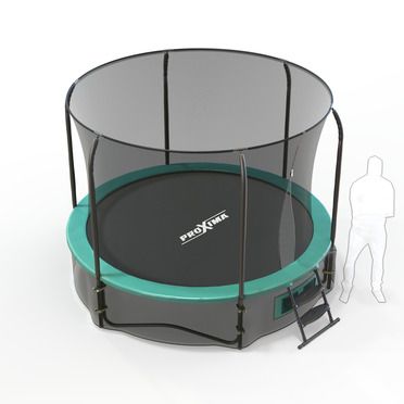- Батут Proxima Premium оборудован удобной лестницей из двух ступеней, которая позволит с легкостью на него забраться даже маленьким прыгунам.
