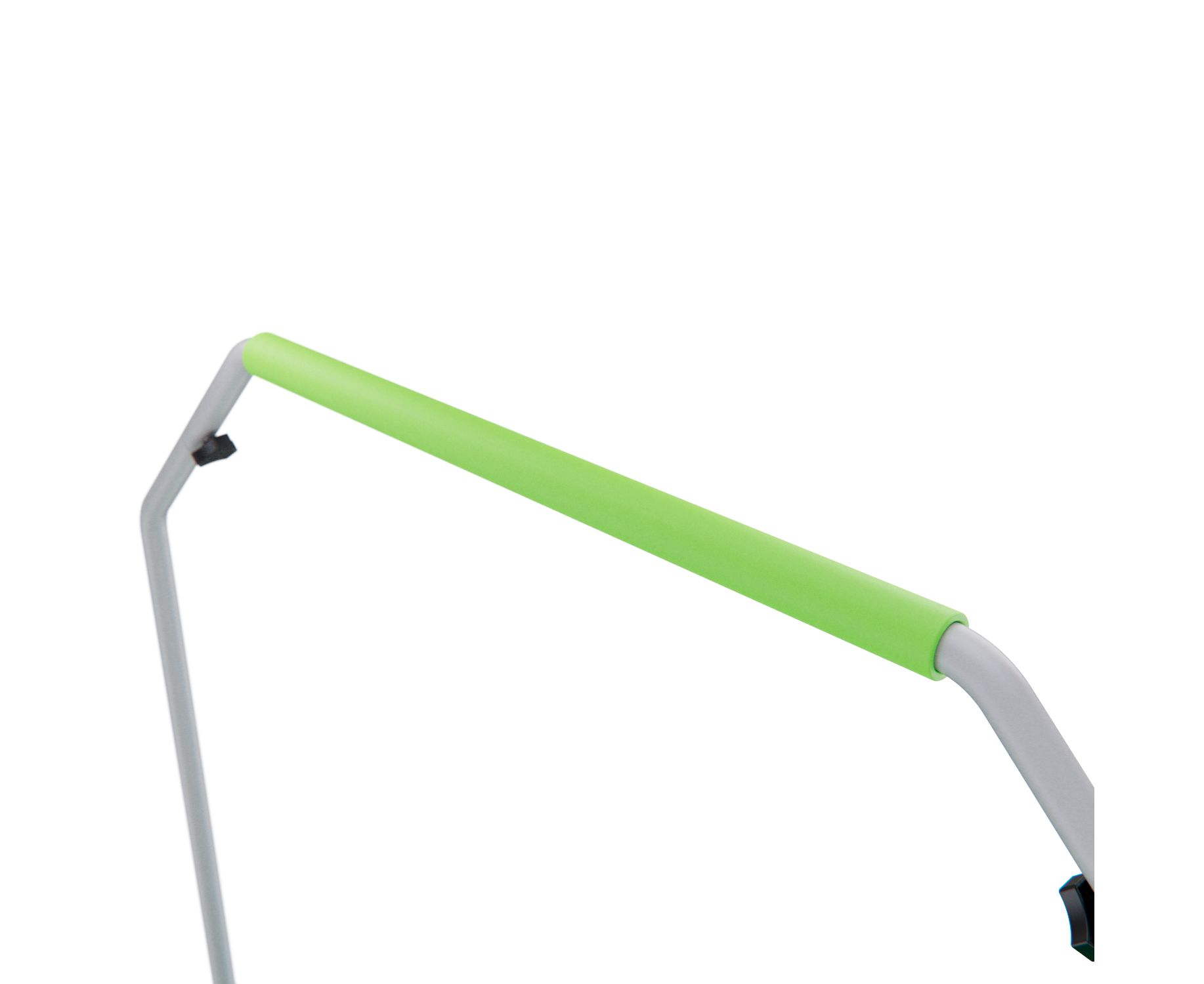 Высота батута составляет 22 сантиметра, а высота поручня варьируется от 100 до 124 сантиметров. Это позволяет использовать батут людям разного роста и возраста.