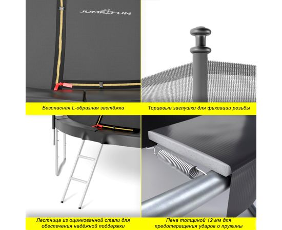 Прыжковое полотно из полипропилена с UV-защитой обеспечивает отличные прыжки и мягкое приземление. Защитный мат толщиной 12 мм обеспечивает дополнительную безопасность при использовании батута.