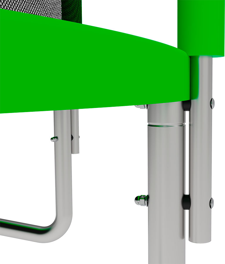 T-Connector (Т-образное крепление, надежная фиксация рамы и ножек. Стойки защитной сетки крепятся с помощью болтов / кронштейна к ножкам батута)
