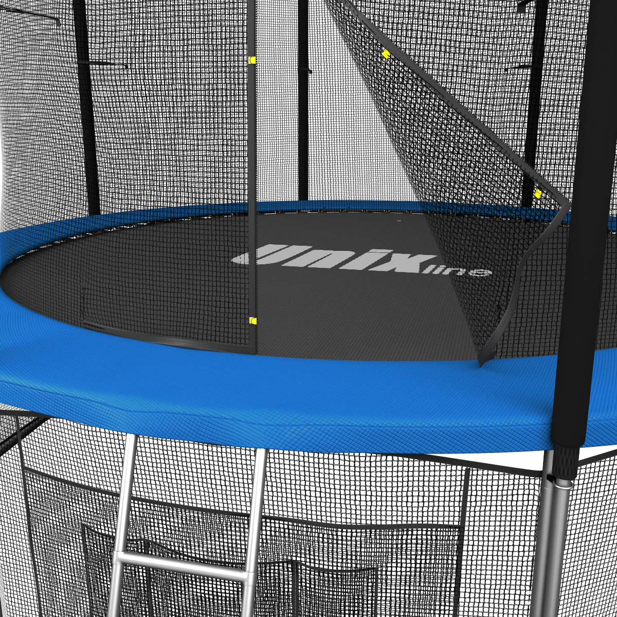 Помимо верхней защитной сетки, все батуты модельного ряда UNIX line оборудованы нижней защитной сеткой, которая препятствует проникновению под прыжковое полотно батута детей, животных, а так же попаданию посторонних предметов, и лестницей для удобства пользования. А в моделях диаметром от 12FT (366см.), в комплект входят специальные крепления батута к земле (колышки).