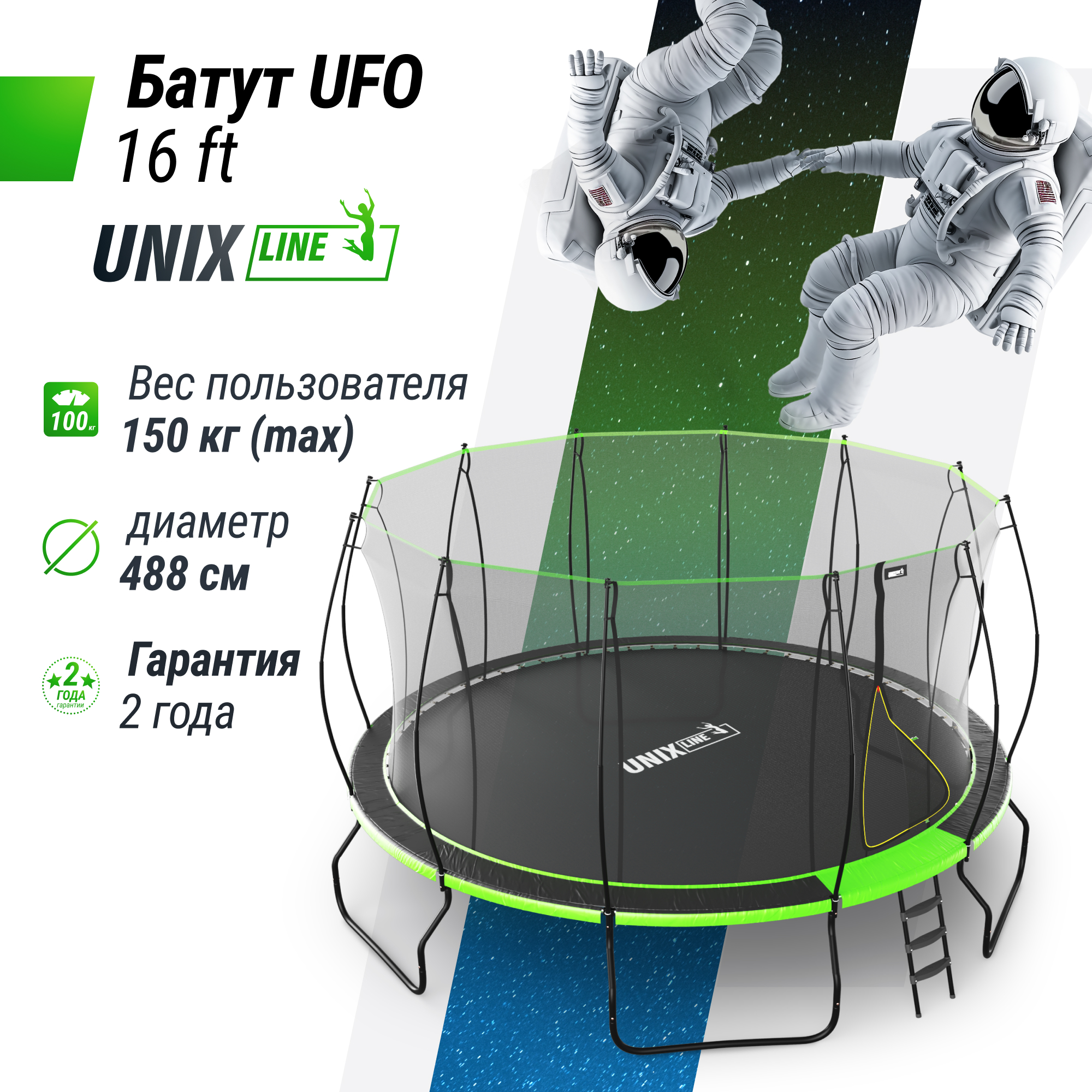 Батут UNIX Line 16 ft UFO Green