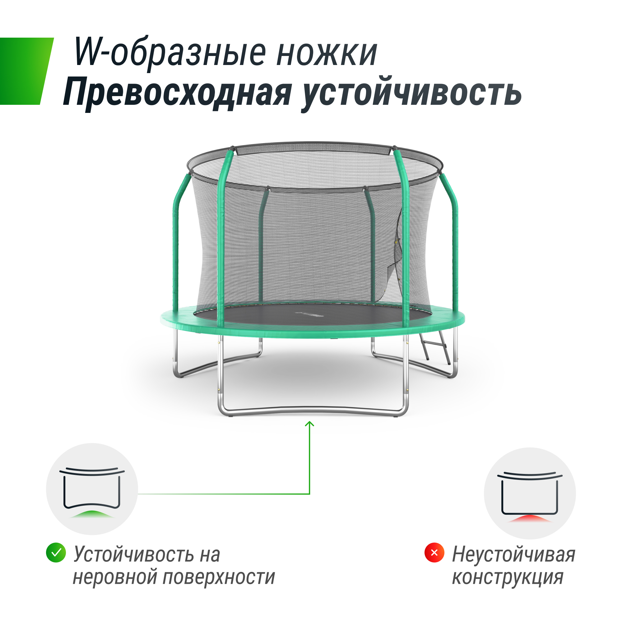 Батуты данной категории оборудованы защитной сетью, изготовленной из плетенной нити с повышенной прочностью, что обеспечивает надежность при использовании и высокую защиту от ультрафиолета.