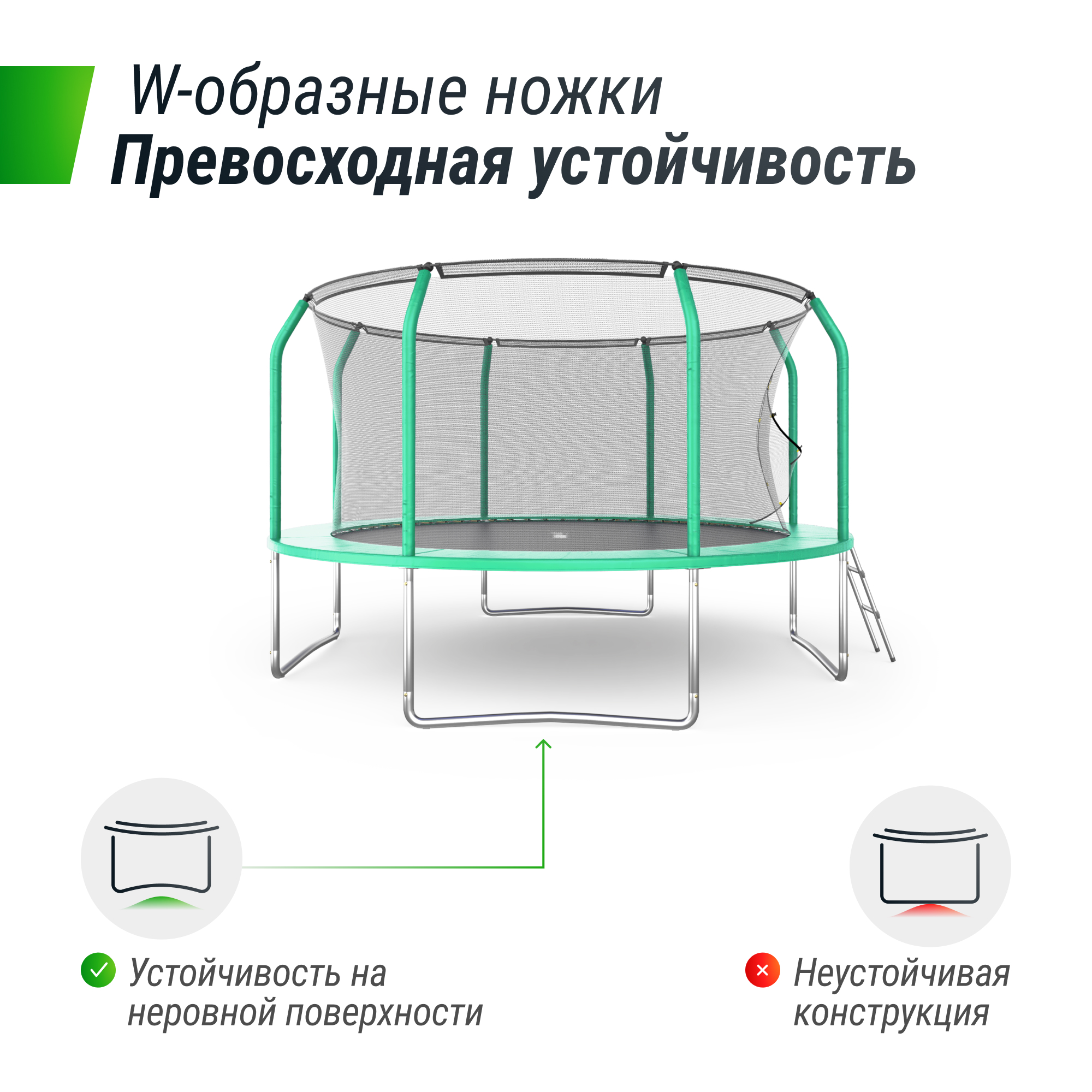 Батуты данной категории оборудованы защитной сетью, изготовленной из плетенной нити с повышенной прочностью, что обеспечивает надежность при использовании и высокую защиту от ультрафиолета.