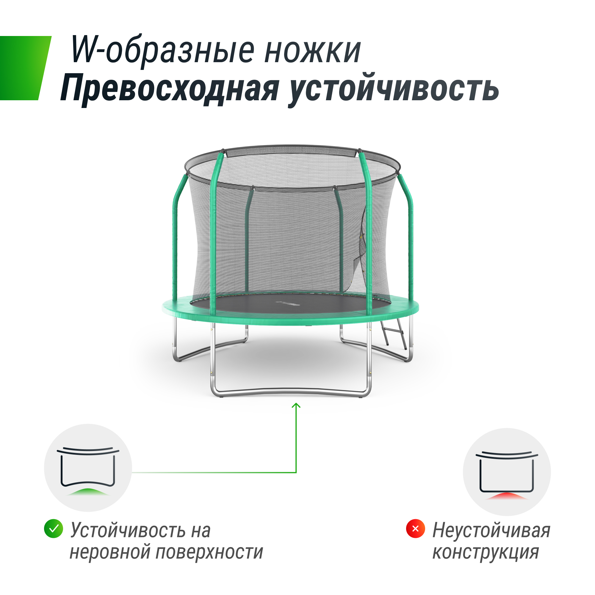 Батуты данной категории оборудованы защитной сетью, изготовленной из плетенной нити с повышенной прочностью, что обеспечивает надежность при использовании и высокую защиту от ультрафиолета.