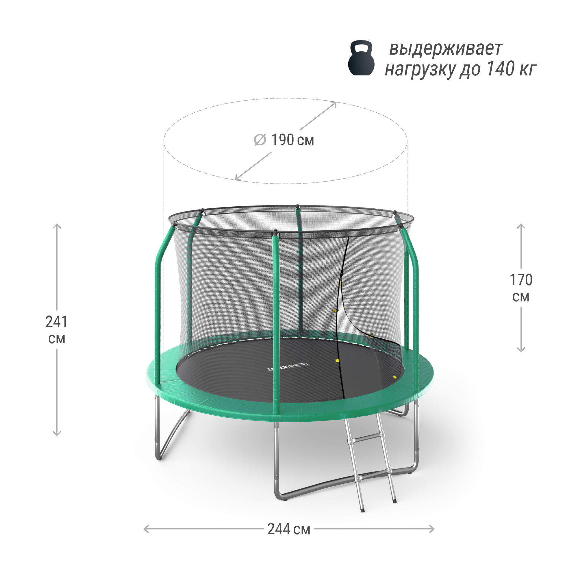 В комплекте с батутом предусмотрена лестница для удобного подъема.