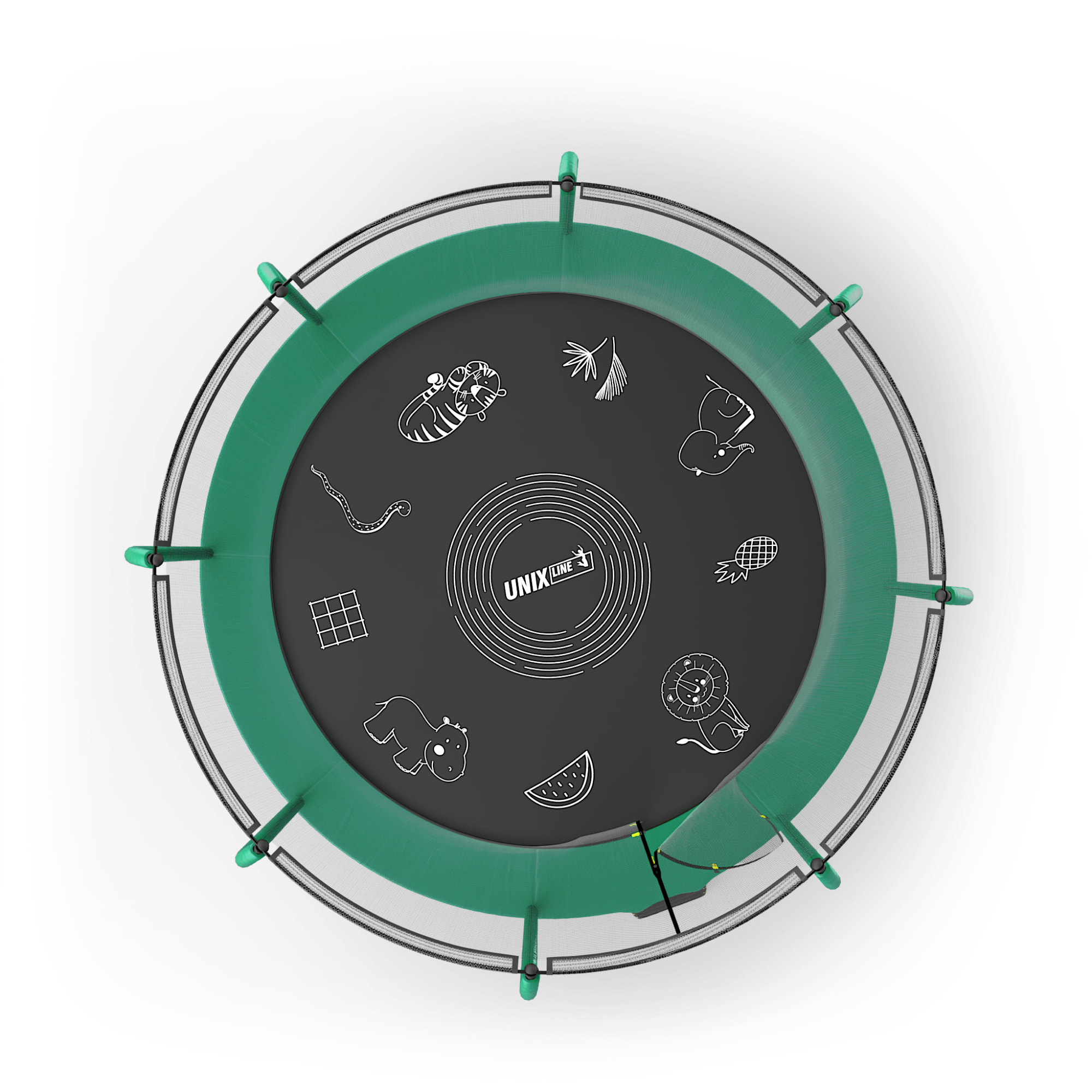 Для реализации самых интересных идей дизайнеры батутов UNIX line SUPREME GAME (4 in 1) специально оставили пустые места на прыжковом полотне. Полная свобода творчества, ограничивающаяся лишь фантазией художника.