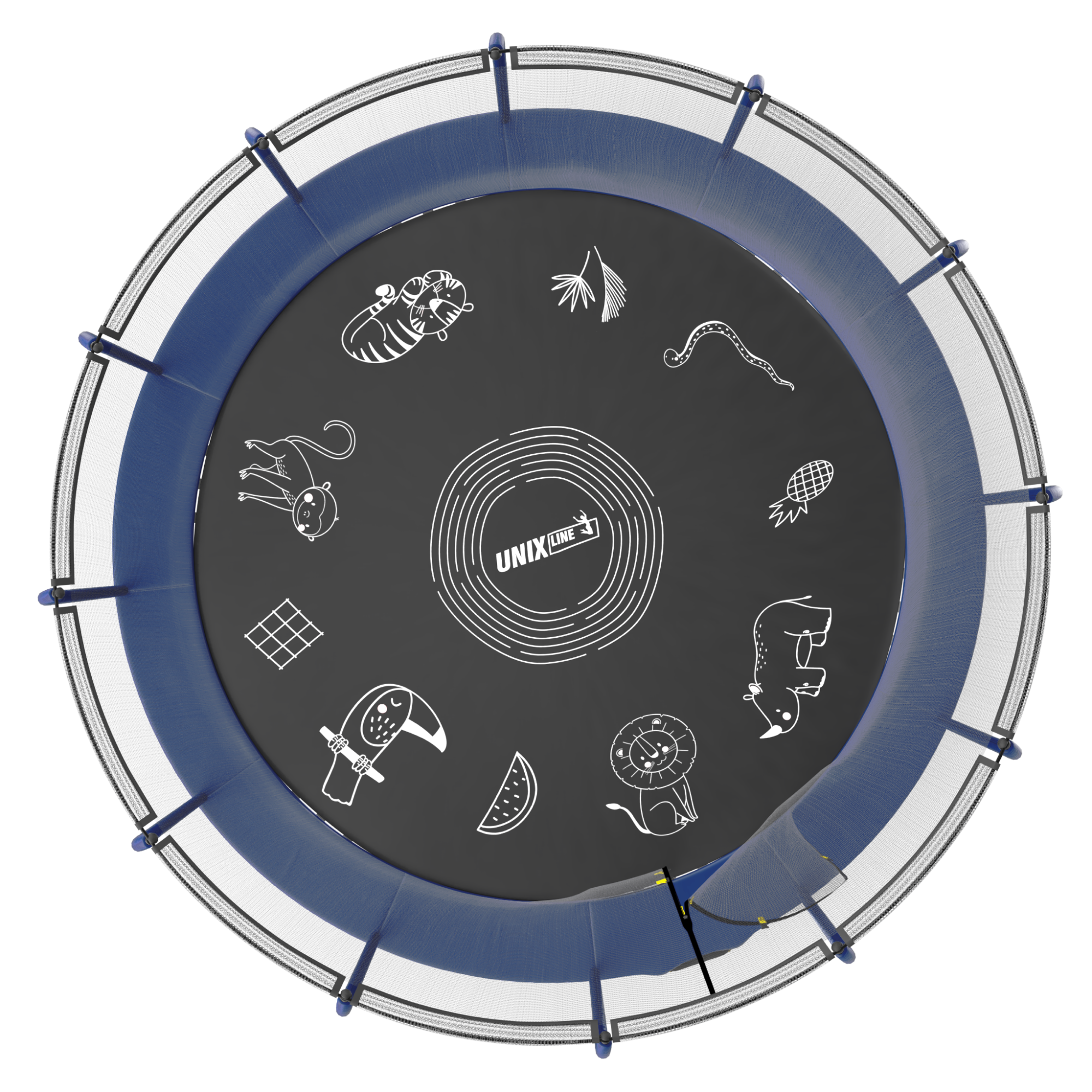 Для реализации самых интересных идей дизайнеры батутов UNIX line SUPREME GAME (4 in 1) специально оставили пустые места на прыжковом полотне. Полная свобода творчества, ограничивающаяся лишь фантазией художника.