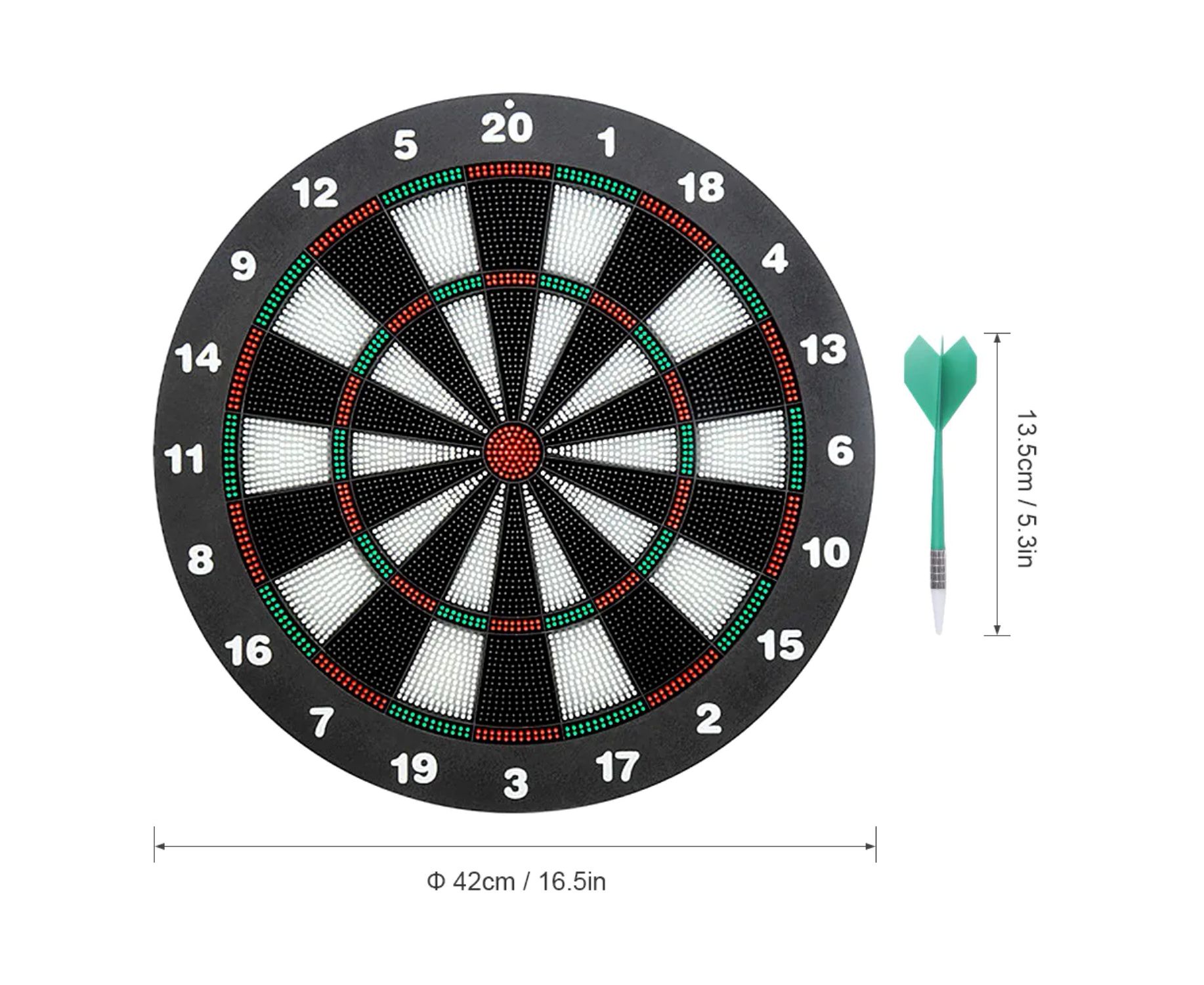 Одновременно в дартс могут играть любое количество игроков. Диаметр мишени составляет 34,5 см, а материал изготовления - пластик.
