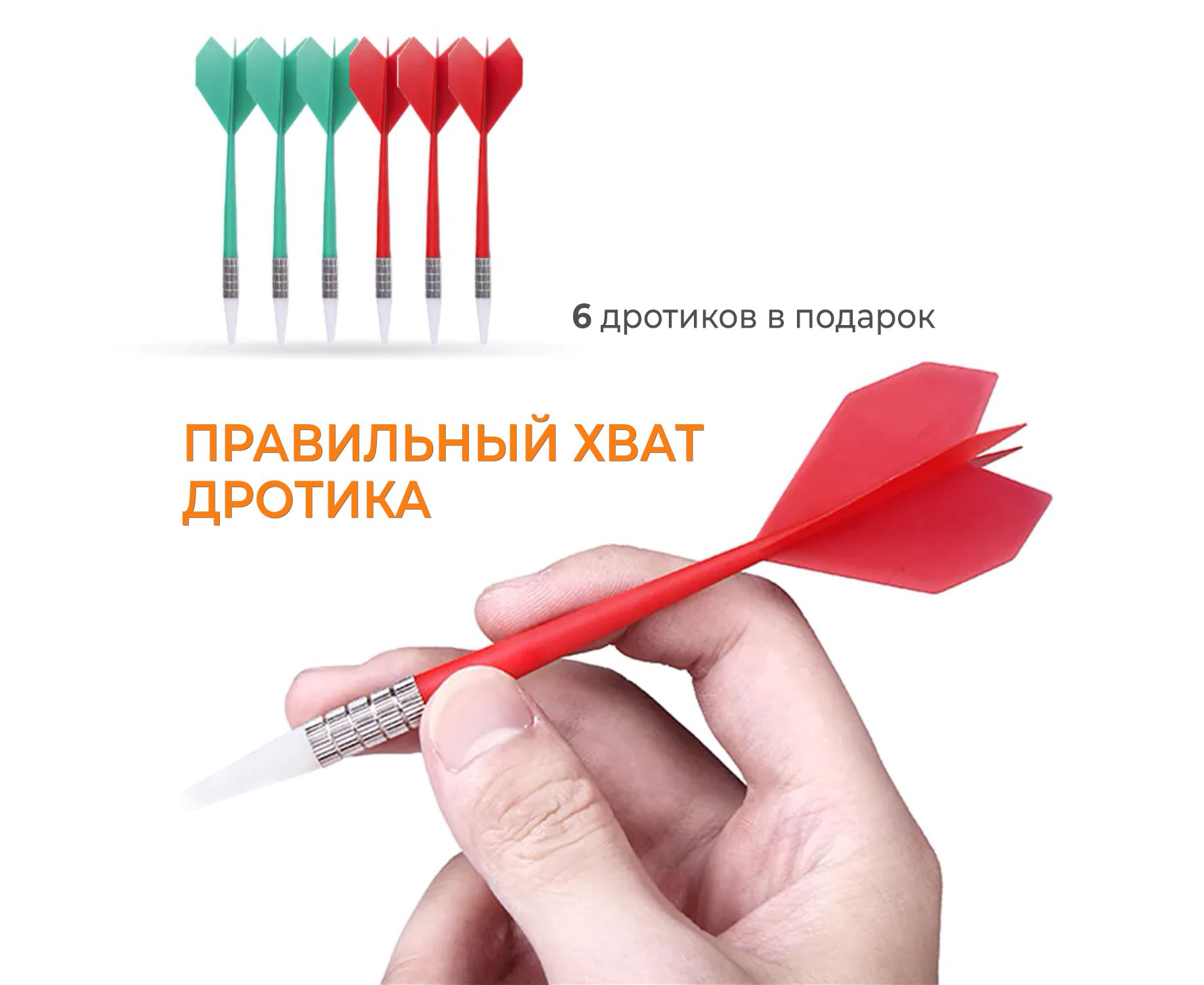 В комплект изделия входят 6 дротиков с мягким наконечником и 6 сменных наконечников. Таким образом, вы получаете все необходимое для начала игры.