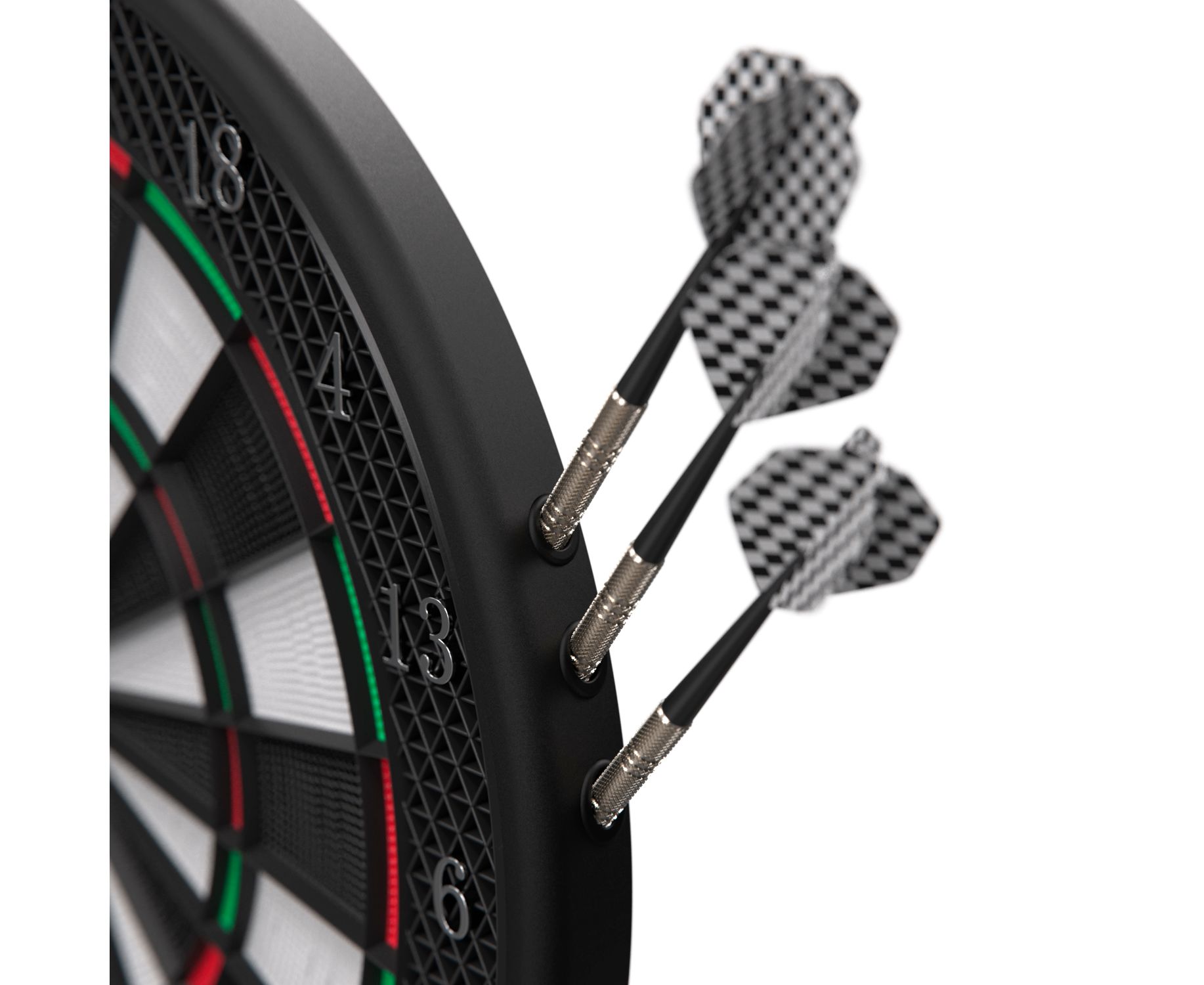 Материал изготовления - ABS пластик. В комплект изделия входят 6 дротиков и 24 наконечника, также выполненных из ABS пластика. Вес дротика составляет 13 грамм, а диаметр мишени - 35 см.
