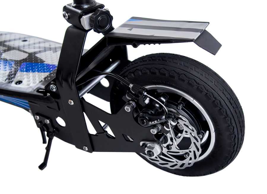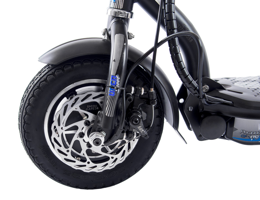 - Быстрота, резвость и мощь. Благодаря двум двигателям по 350W каждый, самокат отлично ускоряется, держит дорогу, маневрирует и уверенно покоряет самые крутые подъемы даже с весьма тяжелым ездоком (до 110 кг).