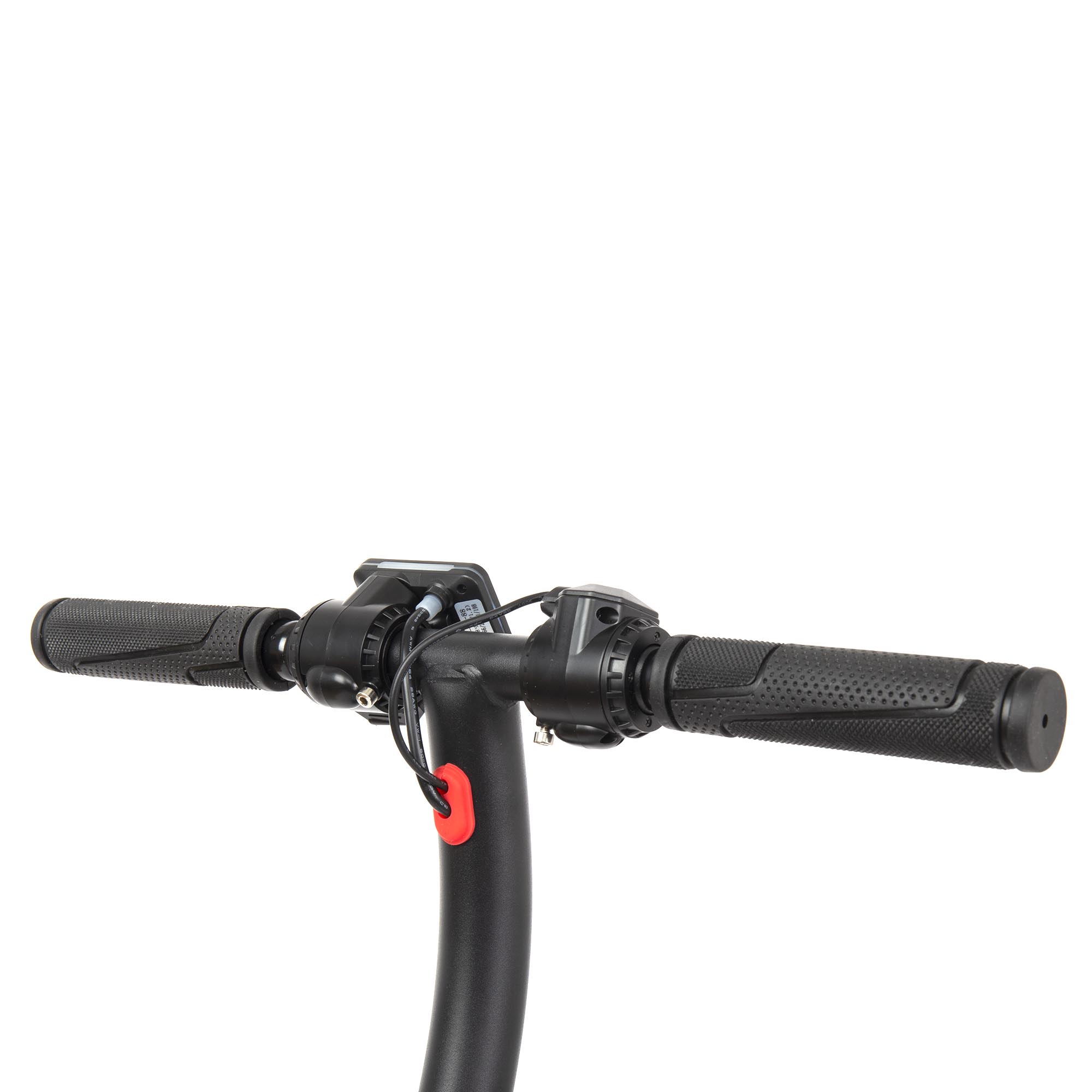 Самокат оснащён электронным и механическим тормозом. Модель оптимально подходит для трасс с углом уклона поверхности до 15 градусов.