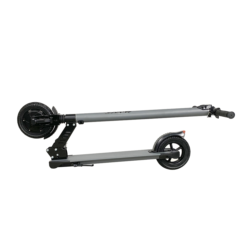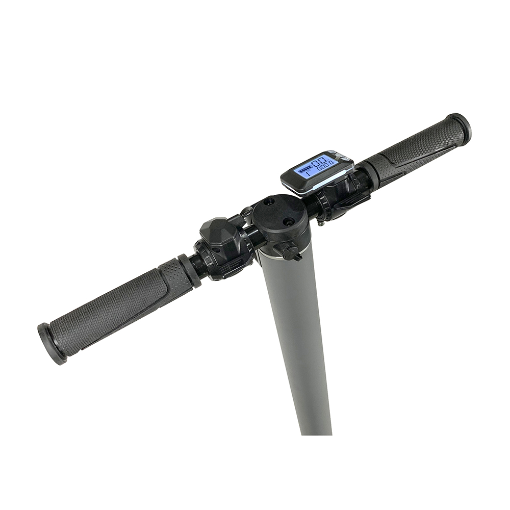 - Цельная рулевая рейка и удобная система складывания. Гарантия отсутствия люфта руля, а также возможность легким движением ноги быстро сложить самокат.