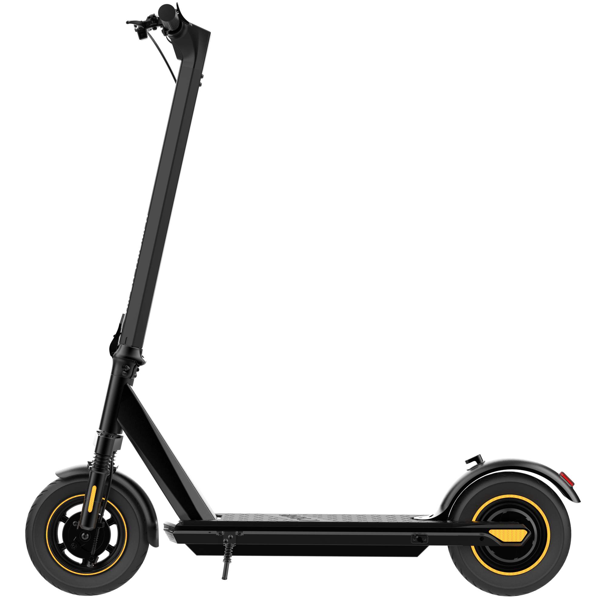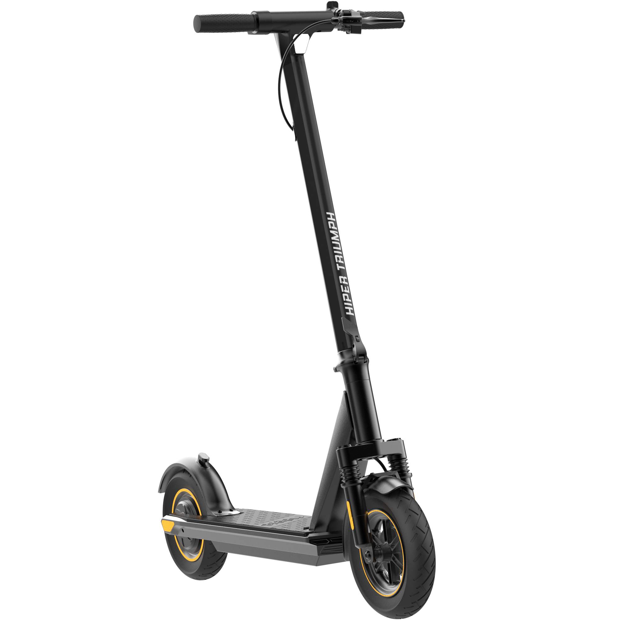 Устойчивые 10 дюймовые колёса с надувными шинами способствуют надёжному сцеплению с дорогой и мягкому ходу самоката. Передний амортизатор поглощает неровности трассы и значительно уменьшает тряску. Самокат оснащён барабанным тормозом.