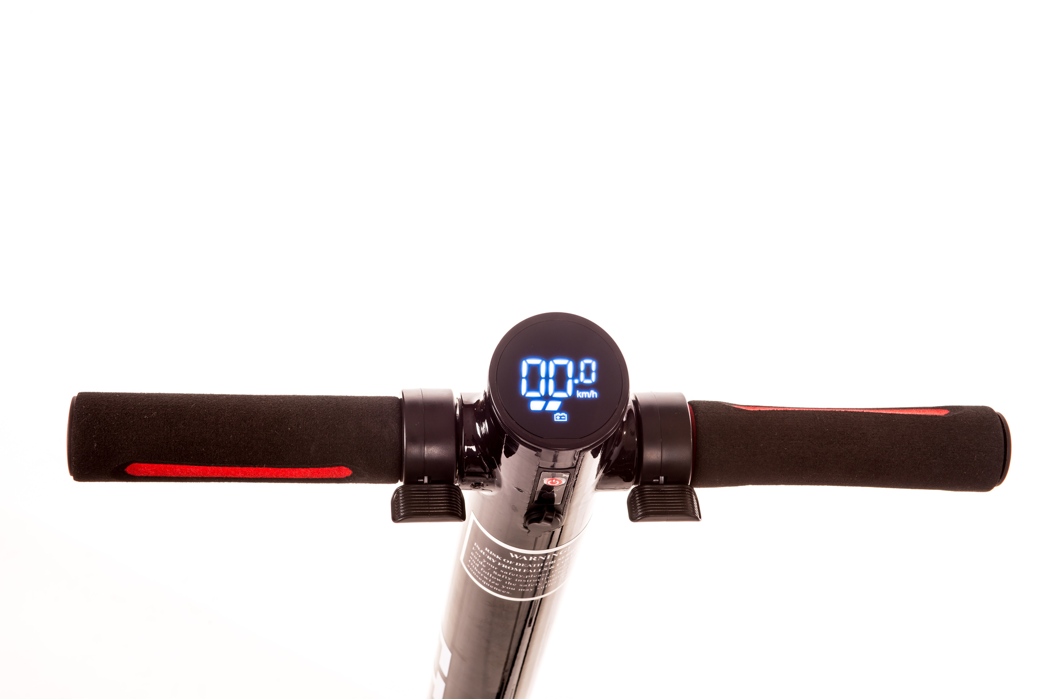 Управление у самоката очень просто и интуитивно понятное. Газ на правой рукоятке, тормоз на левой, а посередине бортовой компьютер, который показывают всю необходимую информацию во время вашей поездки: текущая скорость, пробег, заряд аккумулятора.
