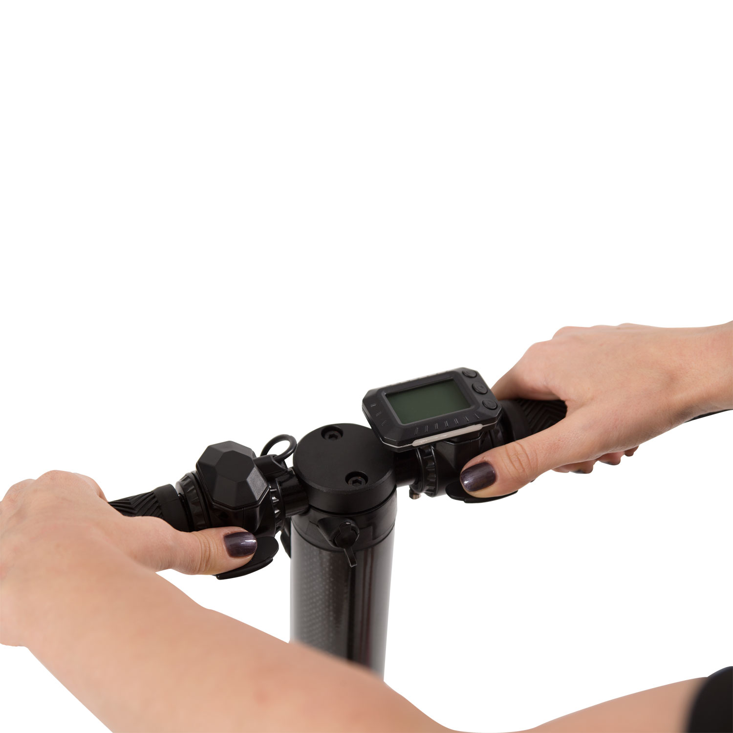 Материал: Карбон (стойка руля и платформа для ног) Размер колес: 5,5 дюймов (14 см) Размеры внешние: 920*410*1000mm Вес: нетто 6,3 кг