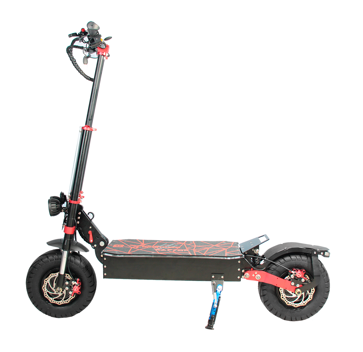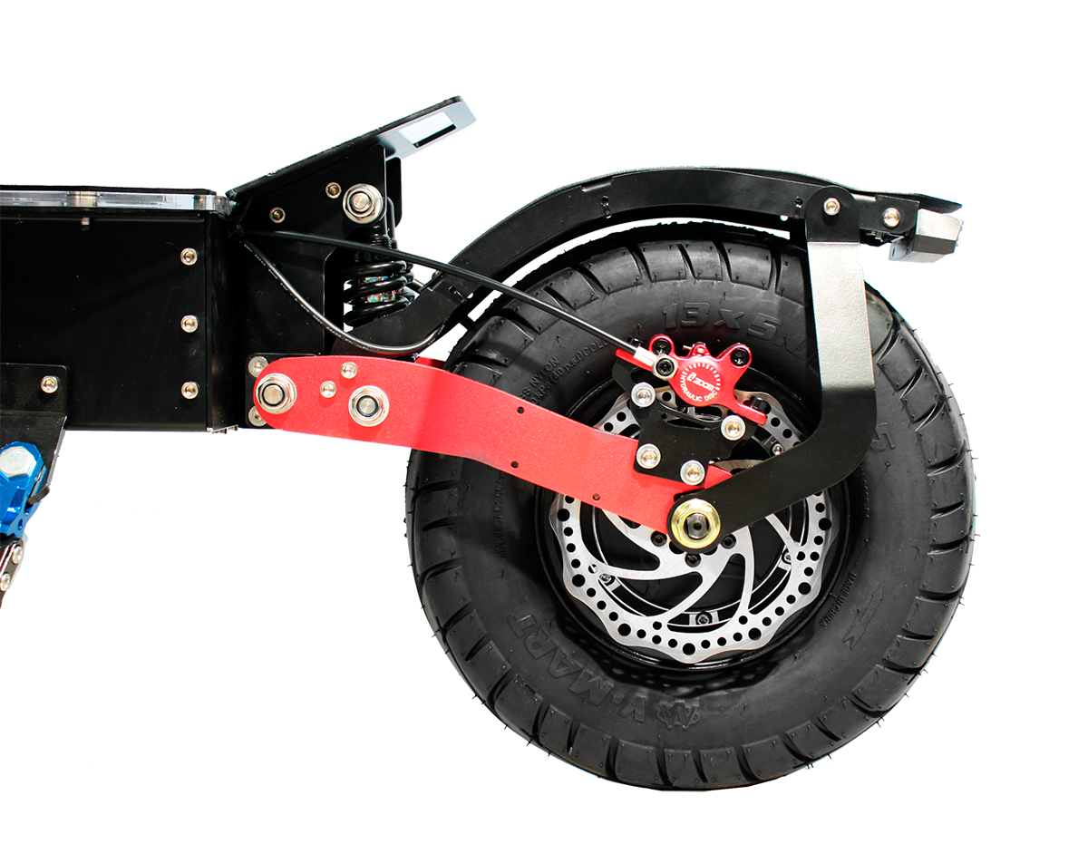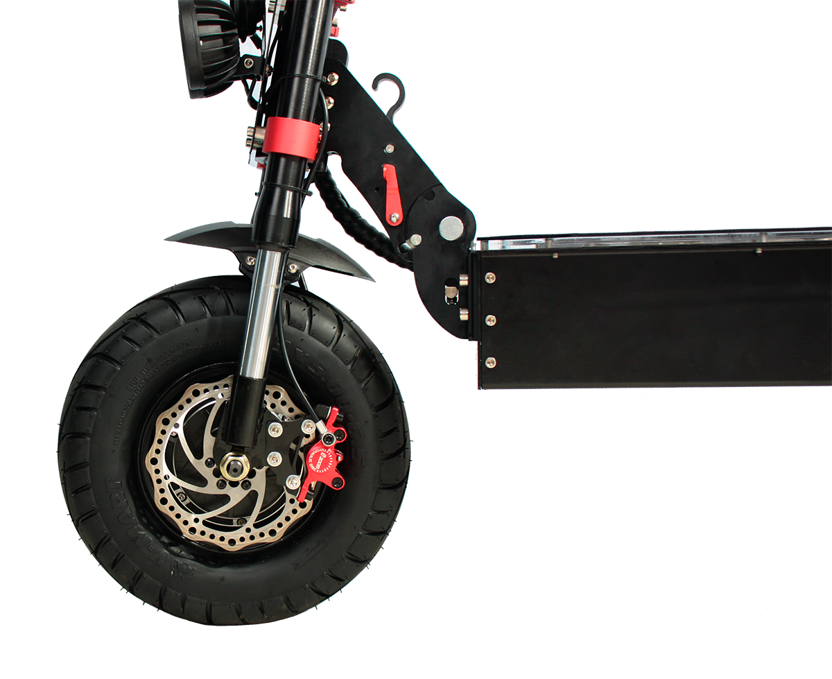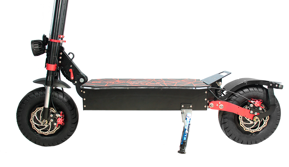 Raptor оснащен новейшими синусными контроллерами по 35А каждый, что дает самокату плавный и мгновенный набор скорости. Самокат собран из сверхпрочного алюминиевого сплава, оснащен гидравлическими тормозами, клаксоном, поворотниками, габаритными и стоп сигналами, яркой фарой. Что делает езду на данном самокате комфортной в любое время суток при любой погоде.